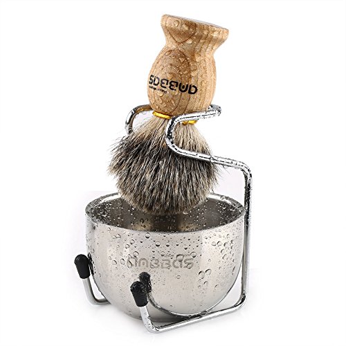 {"about_product": ["Faux badger nylon bristles hair, silky soft and lathers so well, gentle for all kinds skin", "Minimalist badger brush holder, space saving desgin gather the brush and bowl for your bath room", "Stainless steel soap cream bowl is not easy to break than ceramic material, fit the soap which diameter is less than 3\" very well", "Good for your father boy friend lovers who like close wet shave, also friendly for girls who need hair removal", "TIPS: Recommend thoroughly rinse the shaving brush, shake and hang it to dry; The longevity of a quality badger hair shaving brush is directly related to the care and respect it is given"], "product_description": null, "product_information": {"UPC": "749789005584", "ASIN": "B07VKT4MMV", "Department": "mens", "Manufacturer": "Anbbas", "Customer Reviews": "4.6 4.6 out of 5 stars \n\n (3,923)", "Best Sellers Rank": "#9,521 in Beauty & Personal Care (See Top 100 in Beauty & Personal Care) #2 in Shaving Brushes", "Item model number": "z13S1001", "Package Dimensions": "5.71 x 4.57 x 2.64 inches; 7.41 ounces", "Is Discontinued By Manufacturer": "No"}, "product_details": {"UPC": "749789005584", "ASIN": "B07VKT4MMV", "Department": "mens", "Manufacturer": "Anbbas", "Customer Reviews": "4.6 4.6 out of 5 stars \n\n (3,923)", "Best Sellers Rank": "#9,521 in Beauty & Personal Care (See Top 100 in Beauty & Personal Care) #2 in Shaving Brushes", "Item model number": "z13S1001", "Package Dimensions": "5.71 x 4.57 x 2.64 inches; 7.41 ounces", "Is Discontinued By Manufacturer": "No"}}