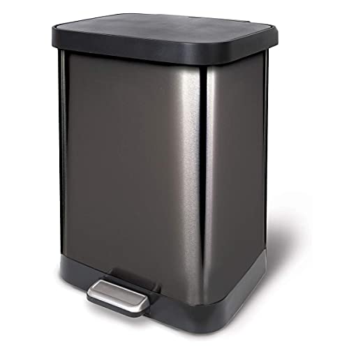 {"about_product": ["ODOR PROTECTION – Provides protection of the lid and the lid frame for the life of the can by blocking unwanted odors and keeping the smell of trash out of your kitchen", "REAR BAG COMPARTMENT – Convenience of storing extra bags right behind the trash can - dispense easily from the sides without having to move the can", "BAG RINGS – Keep the bag slack neatly tucked in while securely keeping your bag in place and preventing the bag from falling in", "SOFT-CLOSE LID – 20 gallon trash can is designed with a controlled and quiet lid closure so there’s no banging each time the lid closes", "FINGERPRINT RESISTANT – Keeps your stainless steel trash can looking clean and perfect. Features a brushed pewter finish"], "product_description": "BECAUSE SIZE (OR CAPACITY) MATTERS\nThe Glad 20 Gallon Stainless Steel Step Trash Can has the extra capacity that fits 50% more trash which means less trips taking out the trash! It is the perfect can for the largest indoor trash bag in America!\n\nCLOROX PROTECTION\nDesigned with deodorizing technology, our large kitchen trash can offers CloroxTM antimicrobial protection of the lid and lid frame by inhibiting growth of odor causing bacteria for the life of the can.\n\nBAG COMPARTMENT CONVENIENCE\nSave time by storing extra garbage bags in the rear bag compartment of your Glad Stainless Steel Step Trash Can. You can easily dispense the trash bags from the sides while the can stays in place.\n\nKEEPING THAT BAG SLACK OUT OF SIGHT\nThe bag rings keep the trash bag secure and in place so you don’t need to worry about showing excess trash bag out of your elegant stainless steel garbage can.\n\nGARBAGE IN, GARBAGE OUT EASY\nNo need to worry about taking out bulky, large trash from the can. With Glad Extra Capacity Stainless Steel Step Trash Can, the complete lid and frame hinge stay open while you take out the trash bag from the can.\n\nQUIET MOOD ENHANCING STEP OPERATION\nThe Glad trash can with lid and foot pedal provides a convenient and quiet step operation with a controlled gentle closure.\n\nNO FINGERPRINTS LEFT BEHIND\nFingerprint resistant so your stainless steel trash can looks shiny and elegant all the time. Focus on more important things – like enjoying quality time with your family or leaving a lasting good impression on your guests.\nWe warrant your trash can to be free of defects in material or workmanship for five years, however some exclusions apply. Damage to the product from accidents, misuse, normal wear or non-home use are excluded. In the unlikely event that your product becomes defective, a repair or replacement will be provided at our discretion.", "product_information": {"ASIN": "B07VL6KTK3", "Manufacturer": "Volume Distributors, Inc.", "Customer Reviews": "4.6 4.6 out of 5 stars \n\n (23,647)", "Best Sellers Rank": "#11,632 in Home & Kitchen (See Top 100 in Home & Kitchen) #23 in Kitchen Waste Bins", "Item model number": "Glad", "Product Dimensions": "16.4 x 14.15 x 29.15 inches; 17.56 Pounds", "Date First Available": "July 23, 2019"}, "product_details": {"Brand": "Glad", "Color": "Pewter", "Shape": "Rectangular", "Capacity": "20 Gallons", "Material": "Stainless Steel", "Room Type": "Kitchen", "Finish Type": "Brushed", "Special Feature": "Antimicrobial, Odor Protection, Quiet Close, Smudge Resistant, Sturdy", "Opening Mechanism": "Step-On", "Recommended Uses For Product": "Kitchen"}}