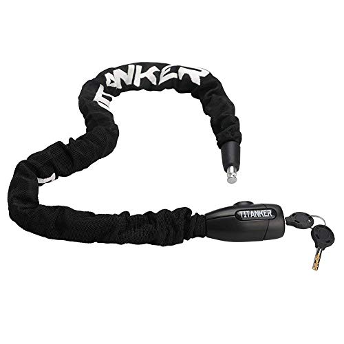 {"about_product": ["Secure & Portable: The key can only be pulled out after the bike chain lock is locked, which prevents the key from being lost. Titanker bike lock comes with 2 keys. You can take one of the keys to use in daily life, and you can leave another key at home in case you accidentally lose one", "Heavy Duty & High Quality: With 8mm thicker security heavy-duty chain links, our bike lock is made of heavy-duty steel known for its cut-resistance. Lubricate the bike chain lock hole and keyhole regularly, this will prolong the lock's service time", "Protective Cloth Sleeve & Dust Cover: Chain is enclosed in protective cloth sleeve, which effectively protects the bike lock chain from rusting and scratching", "Safety Tips: Never leave your bike locked outside for long periods of time. Especially in high crime areas. No bicycle lock is 100% secure", "Portable Safe Size: The overall length of the bicycle chain lock is about 3.3 feet. The links are about 1.97 inches long and about 0.32 inches inch thick. Lock Weight: 2.5 pounds"], "product_description": "", "product_information": {"ASIN": "B07WDHSZSV", "Size": "8mm", "Brand": "Titanker", "Color": "Black-8mm Chain", "Shape": "Round", "Style": "Black-8mm Chain-3.3Feet", "Material": "Alloy Steel", "Lock Type": "Key Lock", "Brand Name": "Titanker", "Finish Type": "Cloth Sleeve", "Item Weight": "2.5 Pounds", "Part Number": "TK-A010302US-1", "Manufacturer": "Titanker", "Package Weight": "1.24 Kilograms", "Controller Type": "Hand Control", "Special Feature": "Anti-theft,Heavy Duty,Portable", "Number of Pieces": "1", "Best Sellers Rank": "#9,497 in Sports & Outdoors (See Top 100 in Sports & Outdoors) #7 in Bike Chain Locks", "Included Components": "1 x Titanker Chain Bike Lock, 2 x Bike Lock Keys", "Date First Available": "August 14, 2019", "Item Dimensions LxWxH": "6.81 x 6.06 x 2.4 inches", "Item dimensions L x W x H": "6.81 x 6.06 x 2.4 inches", "Recommended Uses For Product": "Security", "Item Package Dimensions L x W x H": "7.01 x 6.18 x 2.31 inches"}, "product_details": {"Brand": "Titanker", "Material": "Alloy Steel", "Lock Type": "Key Lock", "Special Feature": "Anti-theft,Heavy Duty,Portable", "Item dimensions L x W x H": "6.81 x 6.06 x 2.4 inches"}}