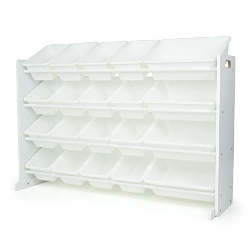 {"about_product": ["Wood Frame and Plastic Bins", "40% More Storage Capacity: Super-sized design offers significantly more space than standard organizers with 16 standard bins and 4 large bins—ideal for toys, books, crafts, and more.", "Durable and Safe Design: Made with engineered wood and reinforced with steel dowels, includes stabilizing braces and anti-tip straps for added safety and strength.", "Customizable and Removable Bins: Includes 20 BPA- and phthalate-free plastic bins (16 standard, 4 large) that can be repositioned or removed for quick access and cleanup.", "Modern, Versatile Look: Neutral grey and white finish blends seamlessly into bedrooms, playrooms, living areas, and classrooms—stylish enough for both kids and adults.", "Perfect for Growing Families: Ideal for children ages 3 and up, this organizer encourages responsibility and makes cleanup easy; great for organizing anything from toys to office supplies."], "product_description": "Upgrade your home organization with the Humble Crew Extra-Large 20-Bin Toy Organizer, the perfect solution for families needing more space and style. Offering 40% more storage than standard toy organizers, this four-tier unit features 16 standard bins and 4 large bins (equivalent to 8 standard bins) to handle everything from toys and books to art supplies and accessories. Crafted with a sturdy engineered wood frame, reinforced steel rods, and safety-enhancing stabilizing braces and anti-tip straps, this organizer is built to handle the hustle and bustle of daily play. Each level can support up to 20 pounds, ensuring long-lasting reliability. The removable plastic bins are easy for kids to use independently—fostering responsibility while keeping spaces neat. Measuring 51\"W x 11\"D (16\"D with stabilizing braces) x 32\"H, this versatile storage rack is ideal for nurseries, bedrooms, classrooms, mudrooms, or even home offices. Finished in a clean grey and white colorway, this unit complements any modern décor and grows with your family’s needs. Easy to assemble with all hardware included, the Humble Crew Extra-Large Organizer transforms chaos into calm in any room.", "product_information": {"UPC": "041869858265", "ASIN": "B07X57ZS44", "Size": "20 Bins", "Shape": "Rectangular", "Style": "Toy Organizer", "Finish": "Laminated", "Pattern": "Solid", "Capacity": "20 Pounds", "Unit Count": "20.0 Count", "Item Weight": "26 pounds", "Part Number": "WO265", "Manufacturer": "Humble Crew", "Mounting Type": "Floor Mount", "Number Of Pieces": "1", "Special Features": "Removable,Sturdy", "Best Sellers Rank": "#926 in Baby (See Top 100 in Baby) #5 in Toy Chests & Organizers", "Item model number": "WO265", "Product Dimensions": "15.5 x 50 x 35 inches", "Batteries Required?": "No", "Included Components": "Frame, Stabilizing Braces, 20 Plastic Bins, Metal Support Bars, Assembly Parts", "Installation Method": "Floor Mount", "Date First Available": "August 28, 2019", "Warranty Description": "Will replace missing or damaged parts within 90 days of purchase.", "Item Package Quantity": "1", "Maximum Weight Capacity": "20 Pounds"}, "product_details": {"Brand": "Humble Crew", "Color": "Natural/White", "Material": "Engineered Wood, Metal, Plastic", "Finish Type": "Laminated", "Item Weight": "26 Pounds"}}