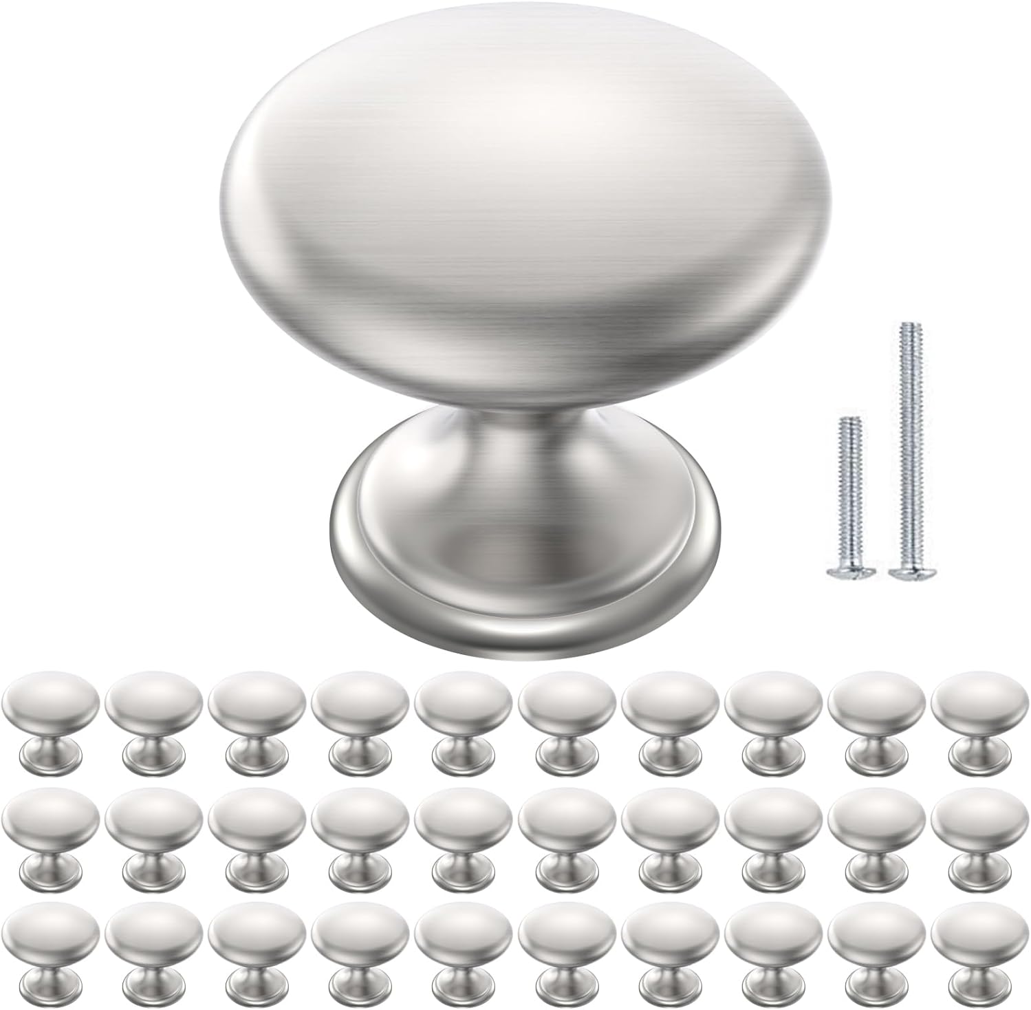 {"about_product": ["Brushed nickel cabinet knobs : The POZEAN 30-Pack Solid Cabinet Knobs are made of quality materials with a brushed nickel finish that complements other nickel appliances and accessories. The sleek round cabinet knobs are designed in a classic brushed nickel color scheme that is both attractive and easy to clean", "What You Get:Come with 30 pack kitchen cabinet knobs and 60 pack two sizes mounting screws,Each cabinet handles and drawer knobs are individually wrapped to protect against scratches", "Measurements: POZEAN cabinet knobs and drawer knobs are equipped with the required accessories.The kitchen cabinet knobs is 1.18 inch in diameter, and 0.9 inch in height. The longer screw is about 1.57 inch in length, the shorter screw is about 0.9 inch in length. Please make sure the thickness of your drawers before order", "Solid Construction: These solid brushed nickel cabinet knobs are with stylish and simple design, suitable for cabinet, drawer, dresser, cupboard, wardrobe furniture door and more. Perfect decoration and beautiful addition for your home, office, kitchen, bathroom, living-room, bedroom.Make sure every cabinet knob and cabinet handles is built to last", "Cabinet knobs easy to Install: Firstly find the position where you want to install and drill a hole on the board. Then pass through the screw from the back of board, and tighten the cabinet knobs from the other side. It is quite easy for you to install brushed nickel knobs for cabinets just with home tools"], "product_description": null, "product_information": {"UPC": "680580594122", "ASIN": "B07YDNWQH6", "Size": "30 Pack", "Brand": "POZEAN", "Color": "Silver", "Theme": "modern and versatile cabinet hardware", "Finish": "Silver", "Material": "Silver with Screws, Solid Cabinet Knobs Brushed Nickel", "Lock Type": "Brushed", "Metal Type": "nickel alloy", "Unit Count": "30.0 Count", "Item Weight": "1.72 pounds", "Manufacturer": "POZEAN", "Exterior Finish": "Cabinet Knobs Brushed Nickel", "Handle Material": "Stainless Steel", "Number of Items": "30", "Special Feature": "Brushed Nickel, Contemporary Aesthetic, Ease of Cleaning, Solid Knobs, Sturdiness", "Hand Orientation": "Ambidextrous", "Number Of Pieces": "30", "Special Features": "Brushed Nickel, Contemporary Aesthetic, Ease of Cleaning, Solid Knobs, Sturdiness", "Best Sellers Rank": "#26,716 in Tools & Home Improvement (See Top 100 in Tools & Home Improvement) #87 in Cabinet & Furniture Knobs", "Product Dimensions": "1.18\"L x 0.9\"W", "Batteries Included?": "No", "Batteries Required?": "No", "Included Components": "knobs and screws", "Projection Distance": "0.9 Inches", "Date First Available": "September 26, 2019", "Customer Package Type": "Standard Packaging", "Item Package Quantity": "1", "Specific Uses For Product": "facilitating the opening and closing of cabinets and drawers", "Handle Attachment Mechanism": "Screw"}, "product_details": {"Brand": "POZEAN", "Color": "Silver", "Style": "Solid Cabinet Knobs", "Material": "Silver with Screws, Solid Cabinet Knobs Brushed Nickel", "Product Dimensions": "1.18"L x 0.9"W"}}