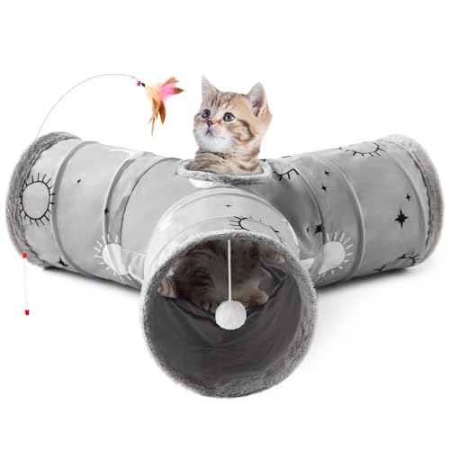 {"about_product": ["Best Ways to Play: Our cat tunnel with 3 spacious tunnels, peephole & ball toy, this popular cat toy gives your kitty more ways to have fun. Provides hours of exercise & self-amusement. This cat tunnel is more suitable for kittens and is made of polyester material.", "Durable Construction: This cat tunnels for indoor cats use polyester fabric material design, not easy to scratch, sturdy spring steel frame, with protective end, Can play hide and seek game.", "Collapsible & portable: Our cat tunnel folds down small in seconds for easy travel and storage. Each tube is about 10 inches tall and 17 inches deep.Take the entertainment with you anywhere, so your pet is never bored!", "Keep Your Pet Active: Compared to cat tents, scratch posts, mouse toys etc, our kitty tunnel offers the most interactive fun with the dangling ball on the exits, truly a great way to encourage daily exercise and keep your pet active.", "Buy With Confidence! \"A perfect cat toy, My cat plays for hours.\" if you (or your pet) aren't thrilled with our cat tunnel, simply let us know for a full and prompt replacement or refund. There's no risk to buy now."], "product_description": null, "product_information": {"ASIN": "B07YKRPYJH", "Size": "3-Way", "Color": "3-Way Blue", "Style": "Peephole", "Material": "Polyester", "Brand Name": "Tempcore", "Item Weight": "200 Grams", "Manufacturer": "TEMPCORE", "Care Instructions": "Hand Wash Only", "Item model number": "TEUSA9CY1AL1A", "Breed Recommendation": "Kitten", "Date First Available": "September 30, 2019", "Item Dimensions LxWxH": "31.5 x 21.6 x 11 inches", "Target Audience Keyword": "house-cats, small-animal-pets", "Specific Uses for Product": "Exercise, Self Amusement.", "Item Package Dimensions L x W x H": "12.39 x 11.78 x 1.1 inches"}, "product_details": {"Material": "Polyester", "Product Dimensions": "31.5"L x 21.6"W x 9.8"H", "Breed Recommendation": "Kitten", "Specific Uses For Product": "Exercise, Self Amusement.", "Recommended Uses For Product": "Indoor"}}