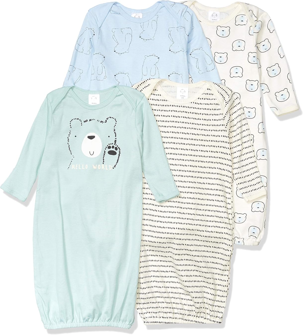 {"about_product": ["Includes four Gerber lap shoulder gowns", "Soft cotton rib", "Expandable lap shoulder neckline", "Machine wash, tumble dry", "baby clothing", "Great Gift Idea"], "product_description": "Our 4-pack of baby gowns provide must-have comfort for your little one! Made from 100% soft cotton, these gowns are gentle on sensitive skin and easy on healing belly buttons, ensuring your baby stays comfortable and happy all night long. Diaper changes can be completed without removing the gown, but the lap shoulder neckline makes it easy to undress when needed. The loose fit allows for better air circulation around baby's body and provides freedom of movement for your little one. Integrated mitten cuffs keep tiny hands warm and prevent accidental scratching to help baby sleep soundly.", "product_information": {"ASIN": "B0FZBJ5SYG", "Department": "baby-boys", "Manufacturer": "Gerber", "Customer Reviews": "4.8 4.8 out of 5 stars \n\n (10,763)", "Best Sellers Rank": "#38,920 in Clothing, Shoes & Jewelry (See Top 100 in Clothing, Shoes & Jewelry) #5 in Baby Boys' Nightgowns", "Date First Available": "November 3, 2025"}, "product_details": {"Fabric type": "100% Cotton", "Care instructions": "Machine Wash"}}