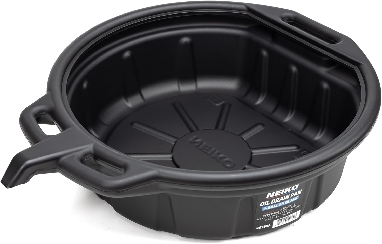 {"about_product": ["HEAVY DUTY: Oil drip tray is constructed of high quality, recyclable polythene plastic that is resistant to weathering so your oil pan will remain durable for carrying oil, gasoline, and antifreeze. Thick walled to maintain rigidity even with hot oil.", "ANTI SPLASH LIP: Anti splash curled lip edge prevents any splashing or spills that can occur while moving or pouring the pan around your garage, repair shop, driveway or backyard.", "LARGE OIL CONTAINER: Deep 6\" x 18\" pan can hold a high capacity up to four gallons /16 liters making it the perfect oil pan for oil changes for all vehicles, motorcycles and heavy equipment.", "POUR SPOUT: Portable oil drain pan for oil change with grip handles on both sides of the pan makes for easy transportation and built in spout makes for easy draining and transferring of fluids.", "EASY TO CARRY: Oil pans for changing oil with sturdy handle makes for convenient hanging when not in use and low profile makes it easy to store away without making a mess."], "product_description": "Introducing the NEIKO 20760A Large Oil Drain Pan, a versatile and essential tool for every automotive enthusiast, featuring a generous 4-gallon (16L) capacity, this black plastic anti-splash oil change pan is designed to catch every drop with its innovative non-spill pour spout, making it the perfect oil drip pan for your garage; whether you need a reliable drip pan for car maintenance, a used oil container automotive, or a low profile oil drain pan motorcycle, this oil drain bucket excels in all scenarios, serving as an efficient oil catcher and coolant drain pan, ensuring a clean and hassle-free oil change with its durable construction, making it the ultimate oil change bucket, motorcycle oil drain pan, and engine oil drain pan, while also doubling as a coolant catch pan and oil change container for all your automotive needs.", "product_information": {"ASIN": "B081TR34C6", "Brand": "NEIKO", "Model": "20760A", "Item Weight": "3.09 pounds", "Manufacturer": "Ridgerock Tools Inc.", "Best Sellers Rank": "#330 in Automotive (See Top 100 in Automotive) #1 in Oil Drains", "Item model number": "20760A", "Package Dimensions": "20.25 x 20 x 6.75 inches", "Date First Available": "October 28, 2018", "Manufacturer Part Number": "20760A"}, "product_details": {}}