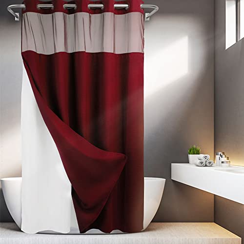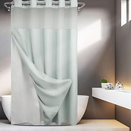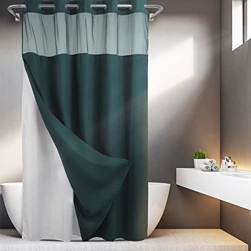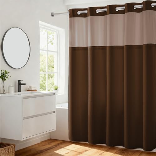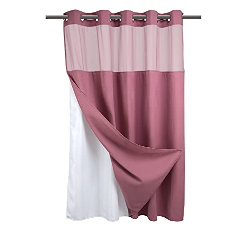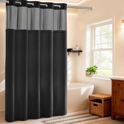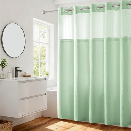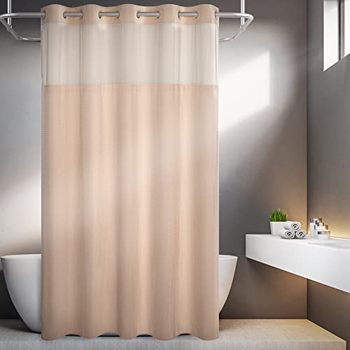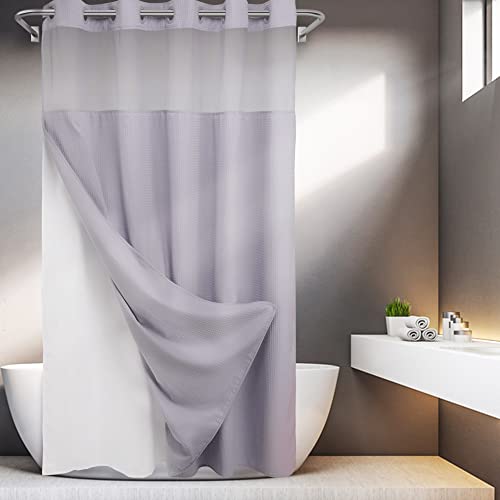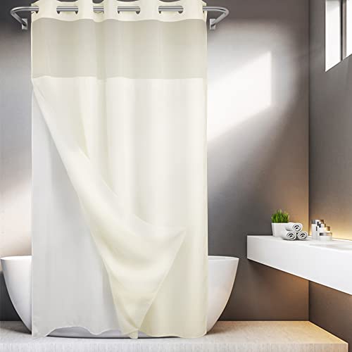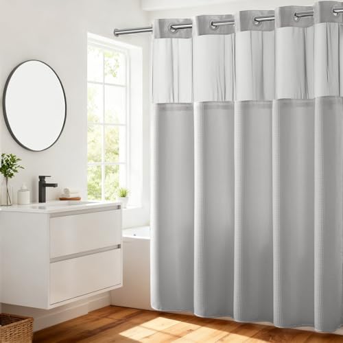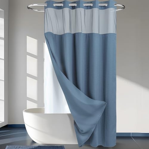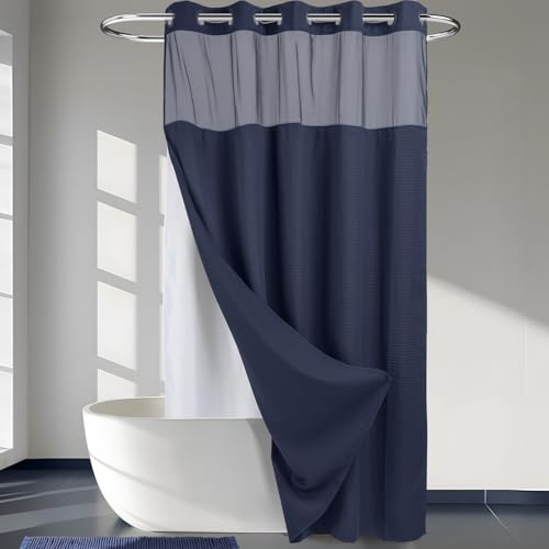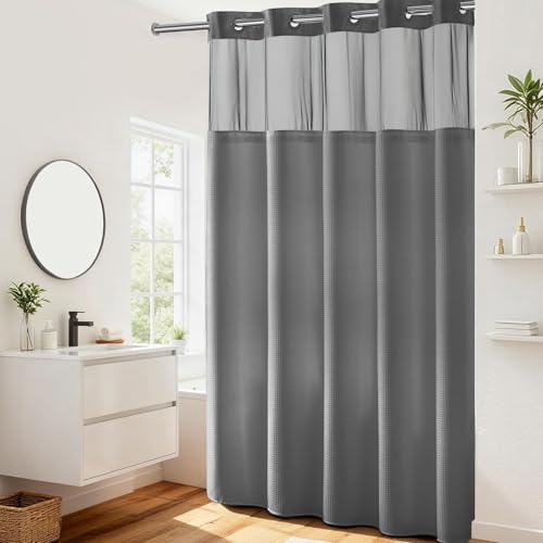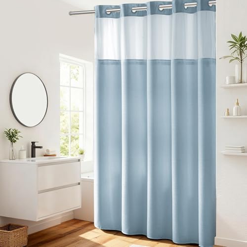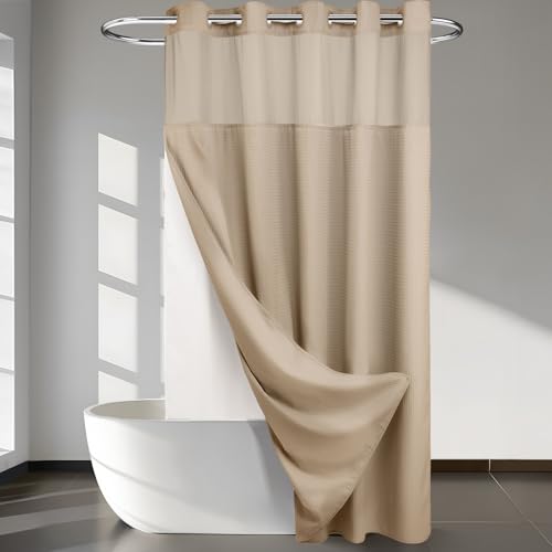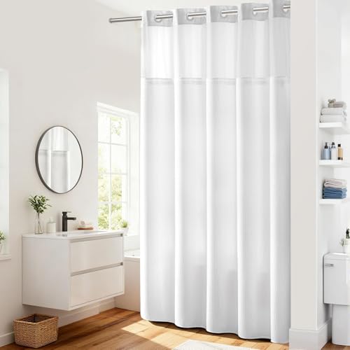 {"about_product": ["100%polyester", "Size Notice: The usable size is the same as a regular 71x72 shower curtain,snap in liner is 70\" x 54\" (WxL)", "This bathroom curtains shower set designed with \"Split Rings\" that let you hang them easily. No need to buy hooks and no need to remove the rod", "A clear window along the top lets light in and allows you to see out while maintaining privacy", "Hotel Quality: The shower curtain and liner are made with high quality Fabric, heavy weight to keep it in place. Water repellent treatment can repel the water inside tub", "Package Included: 1 Shower curtain and 1 fabric snap-on replacement Liner"], "product_description": null, "product_information": {"UPC": "781621008841", "ASIN": "B082NJY2ZY", "Size": "71\"W x 74\"L (Pack of 1)", "Brand": "River Dream", "Color": "White", "Style": "Classic", "Theme": "Solid", "Opacity": "Semi-sheer", "Pattern": "Waffle Weave", "Seasons": "All Season", "Material": "Polyester", "Room Type": "Bathroom", "Top Style": "Grommet", "Model Name": "No hooks Needed Shower Curtain with Snap in Liner", "Unit Count": "1.0 Count", "Weave Type": "Waffle", "Fabric Type": "100%polyester", "Item Weight": "2.6 pounds", "Curtain Form": "Shower Curtain", "Manufacturer": "River Dream", "Hanging Method": "Grommet", "Package Weight": "1.27 Kilograms", "Number of Items": "1", "Special Feature": "Magnets, Sheer Window, Snap-in Liner, Split Ring", "Number of pieces": "1", "Assembly required": "No", "Best Sellers Rank": "#3,681 in Home & Kitchen (See Top 100 in Home & Kitchen) #4 in Shower Curtain Sets", "Item model number": "RG-07", "Batteries required": "No", "Lining Description": "Fabric Snap-in Liner", "Product Dimensions": "74\"L x 71\"W", "Included Components": "Liner", "Indoor/Outdoor Usage": "Indoor", "Age Range (Description)": "Adult", "Product Care Instructions": "Machine Wash", "Specific Uses For Product": "Decorative", "Recommended Uses For Product": "Indoor"}, "product_details": {"Brand": "River Dream", "Color": "White", "Opacity": "Semi-sheer", "Material": "Polyester", "Product Dimensions": "74"L x 71"W"}}