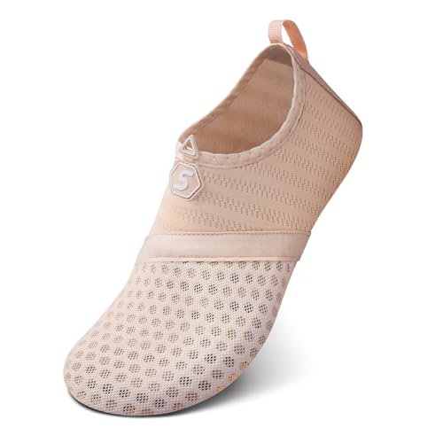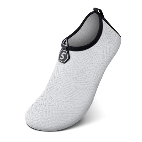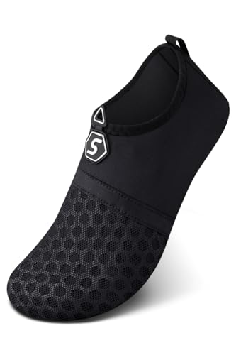 {"about_product": ["SEEKWAY: Not just for protection, but also for company.", "Amphibious Protection:This shoes was designed for both water use and dry land. The rubber outsole can protects feet from sharp objects like rocks, gravel, shells and from being burned by hot sand or boardwalk.The non-slip stripe on the soles can provides superior grip even on slippery surfaces.", "Lightweight & Flexiblity:It makes you feel like wearing socks, providing you with soothing and comfortable fit.Flexibility allows you plenty the freedom of movement.The lace-free design makes it easy to put on and take off.", "Breathability & Comfort:Soft and elastic spandex upper can dry quickly and fit snugly to your feet,giving you comfortable tight feel overall.The smooth elastic neck prevents chafing and keeps the shoes from slipping off during exercise.", "Occasion:River,Pool,Lake,Surf,Rafting,Windsurfing,Boating,Kayaking,Snorkeling,Sailing,Creek trip,Water park,Sand volleyball,Water aerobics,Travel,Camping,Canoeing,Wake-boarding,Fishing,Gardening,Yoga,Outdoor."], "product_description": null, "product_information": {"ASIN": "B0F88JLF76", "Department": "womens", "Customer Reviews": "4.3 4.3 out of 5 stars \n\n (19,089)", "Product Warranty": "For warranty information about this product, please click here", "Best Sellers Rank": "#29,018 in Clothing, Shoes & Jewelry (See Top 100 in Clothing, Shoes & Jewelry) #18 in Men's Water Shoes #24 in Women's Water Shoes", "Date First Available": "April 11, 2019"}, "product_details": {"Fabric type": "92% polyester", "Sole material": "Rubber", "Inner material": "Spandex", "Outer material": "Polyester"}}
