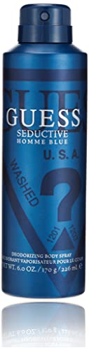 {"about_product": ["Fragrance story: guess seductive homme for men deodorizing body spray is designed for the confident, sexy, free-spirited, sophisticated man", "Olfactory family: oriental woody fougere", "Fragrance notes: top - cardamom, mandarin pulp, pink pepper / mid - vanilla orchid, crushed violet leaves, vetiver / base - amberwood, creamy sandalwood, skin musk, patchouli", "Suggested use: apply on pulse points - behind your ears, on your neck, and on wrists", "Designed for the confident, sexy, free-spirited, sophisticated man."], "product_description": "This seductively addictive fragrance features a fresh mixture of peppery notes and aquatic accords grounded with an earthy base. With its irresistible appeal, this sophisticated scent is ideal for the modern man.", "product_information": {"UPC": "085715005427 085715320483", "ASIN": "B083M7JYXH", "Manufacturer": "GuessFactory", "Customer Reviews": "4.6 4.6 out of 5 stars \n\n (2,196)", "Best Sellers Rank": "#935 in Beauty & Personal Care (See Top 100 in Beauty & Personal Care) #1 in Men's Scented Body Sprays", "Item model number": "32048A", "Product Dimensions": "2.1 x 2.1 x 7.1 inches; 6 ounces"}, "product_details": {"Brand": "GUESS", "Scent": "Oriental Woody", "Item Form": "Aerosol", "Item Volume": "6 Fluid Ounces", "Special Feature": "Scented"}}