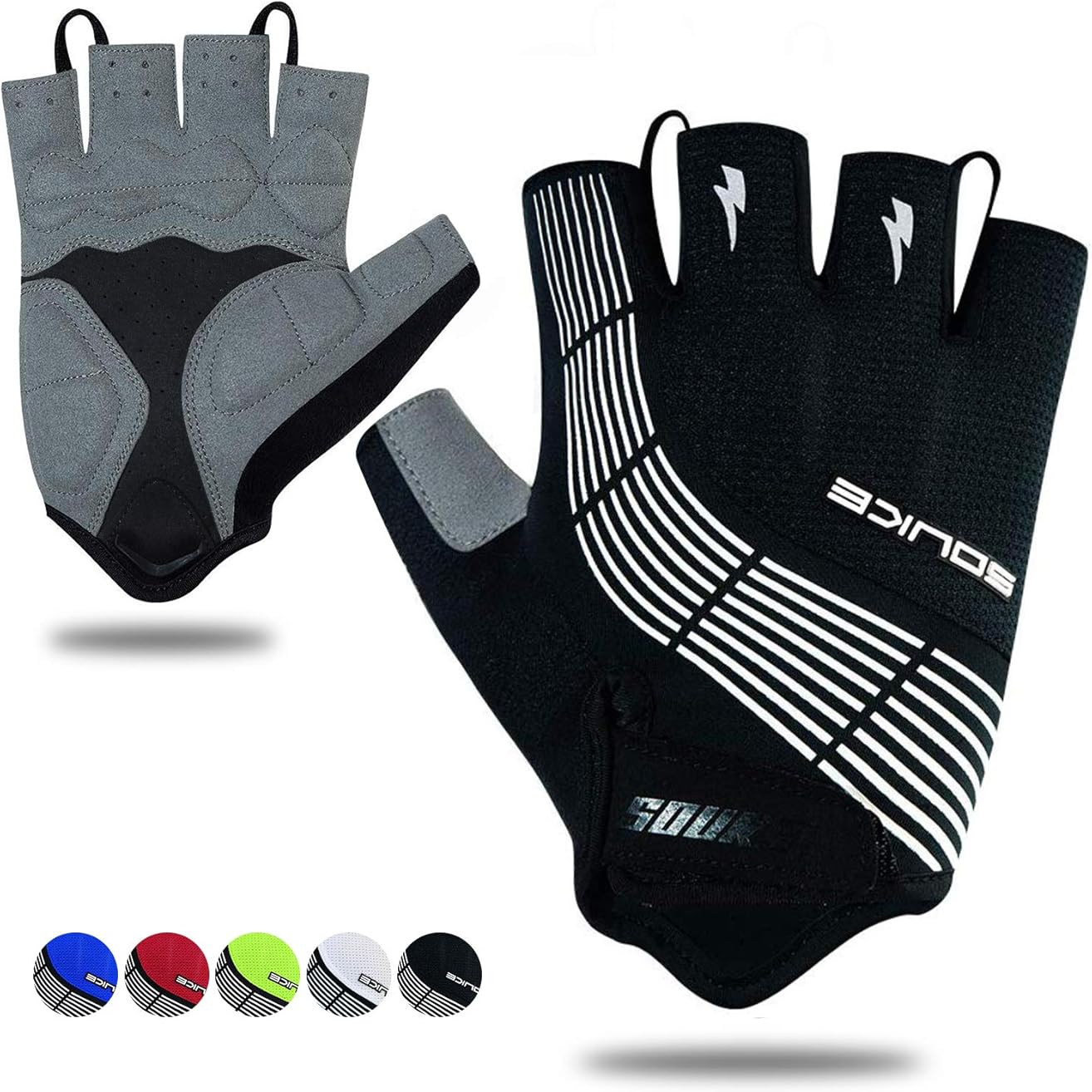 {"about_product": ["【BREATHABILITY AND FLEXIBILITY】With a stylish design that will complement any kit choice,the Souke mens cycling gloves are an excellent short finger summer glove choice for recreational road cycling and MTB riders. The back of these bike gloves is made of a moisture-wicking 4-way stretch, breathable Lycra and mesh fabric that keeps your hands well ventilated and fresh. ★To prevent overheating, Souke has added venting holes to the fingers and thumb.", "【ANATOMIC FIT AND EXCELLENT PROTECTION】The cycling gloves for men are equipped with 5mm(0.5in) rebound foam padding in the palms to offer shock absorption and impact resistance, reducing fatigue to help you perform longer. This bicycle glove features optimized padding that delivers exceptional ergonomic design and high-quality construction to eliminat the bulky feel and allow your hands to move naturally for enhanced control.", "【ANTI-SLIP AND ANTI-ABRASION】The mountain bike gloves are perfect for providing better grip on the handlebar in damp or sweaty conditions. Synthetic palm is made from a thin microfibre to combine durability with exceptional grip and comfort. Additionally,double-stitched seams provide increased durability for season of hard use and frequent washing.", "【PERFORMANCE FEATURES】These mens bicycle gloves offer many of the features found in more expensive gloves.The Velcro closure ensures a good fit and Two finger loops and a pull tab on the bottom make for easy removal.★Wiping surface on thumb helps clear sweat from your brow mid-ride. And multiple reflective detail increase your visibility to motorists in low-light conditions.", "【MULTI-PURPOSES AND 100% SATISFACTION】These versatile biking gloves can be used for weight lifting and other gym exercises not just biking.If you don't have a positive experience for any reason,we will do whatever it takes to make sure you are 100% satisfied with your purchase. We have 24/10 email support. Please contact us if you need assistance."], "product_description": null, "product_information": {"ASIN": "B083Q4F5FG", "Department": "mens", "Manufacturer": "Souke Sports", "Customer Reviews": "4.6 4.6 out of 5 stars \n\n (5,041)", "Product Warranty": "For warranty information about this product, please click here", "Best Sellers Rank": "#41,664 in Clothing, Shoes & Jewelry (See Top 100 in Clothing, Shoes & Jewelry) #31 in Men's Cycling Gloves", "Date First Available": "January 9, 2020"}, "product_details": {"Origin": "Imported", "Fabric type": "★Please refer to the size chart in the product image area for choosing the fittest size.You can choose the larger size if you want a loose one.★ Upper: 87% nylon+13% spandex;Palm: 60% nylon+40%pu;5mm foam padding", "Care instructions": "Hand Wash Only"}}