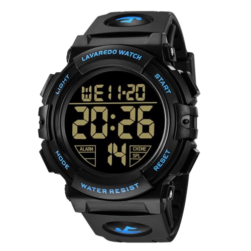 {"about_product": ["Multifunctional: Digital display, LED Back light, Date, Alarm, Shock Resistant, Stopwatch. Perfect for both outdoor and indoor sports, such as running, climbing, fishing, ect.", "Simple and Sporty Design: Sporty dial, stylish look. Large dial and numbers with LED back light, show time clear in the dark,easy to read. Accurate time, long service life.", "High Quality Silicone Band: Pin buckle, easily to adjust the size.Flexible, comfortable and environmentally friendly.", "Waterproof: Daily life level waterproof, only supports a small amount of water splash caused by hand washing and rain, and does not support wearing in swimming, showering and sauna.", "After sales service: If you have any questions about the product, please feel free to contact seller, we will give you a satisfactory solution."], "product_description": "Main features: \nMen's Digital Sport Watch \nEquipped with alarm, calendar, day, date and stopwatch function. 12/24 hours. \nSee the time clearly in the dark with backlight, easy to read. \nHigh quality silicone band, soft and comfortable to wear. \n5ATM waterproof, convenient for everyday use. \nMetal buckle, adjustable straps. \nMaterial: \nMovement: Digital sports watch, waterproof. \nWristband: High quality silicone resin band provides a comfortable wearing experience. \nMirror surface: highly transparent resin glass, scratch resistant. \nCase: imported PC case. \nButton: stainless steel \nBottom cover: high quality stainless steel, waterproof. \nParameters: \nDial diameter: 50 mm. \nDial thickness: 17 mm. \nBand Length: 270mm \nBand width: 20 mm. \nBox contents: \n1 x sports watch. \n1 x User Manual \n1 x gift. \n1 x watch box. \nAbout waterproof watches: \nWaterproof resistance is tested under static conditions. Wearing a watch that is 50 meters waterproof, the watch will be exposed to much greater pressure than a 50 metre static test. Therefore, the number of metres on the watch does not indicate the depth to which the watch can be taken. \nThese watches can withstand small splashes of water, but should not be worn when washing hands or immersing hands in water. \nPlease do not pull out the buttons underwater, frequent contact with water would reduce the life of the watch. \nClean the watch with a soft cloth and wipe it gently.", "product_information": {"ASIN": "B085HJ5K7V", "Batteries": "1 CR2032 batteries required.", "Department": "mens", "Manufacturer": "L LAVAREDO", "Customer Reviews": "4.3 4.3 out of 5 stars \n\n (10,674)", "Product Warranty": "For warranty information about this product, please click here", "Best Sellers Rank": "#7,799 in Clothing, Shoes & Jewelry (See Top 100 in Clothing, Shoes & Jewelry) #24 in Men's Wrist Watches", "Item model number": "L6606Man-Blue", "Package Dimensions": "3.39 x 3.23 x 2.52 inches; 2.26 ounces", "Date First Available": "March 25, 2020", "Is Discontinued By Manufacturer": "No"}, "product_details": {"ASIN": "B085HJ5K7V", "Batteries": "1 CR2032 batteries required.", "Department": "mens", "Manufacturer": "L LAVAREDO", "Customer Reviews": "4.3 4.3 out of 5 stars \n\n (10,674)", "Product Warranty": "For warranty information about this product, please click here", "Best Sellers Rank": "#7,799 in Clothing, Shoes & Jewelry (See Top 100 in Clothing, Shoes & Jewelry) #24 in Men's Wrist Watches", "Item model number": "L6606Man-Blue", "Package Dimensions": "3.39 x 3.23 x 2.52 inches; 2.26 ounces", "Date First Available": "March 25, 2020", "Is Discontinued By Manufacturer": "No"}}
