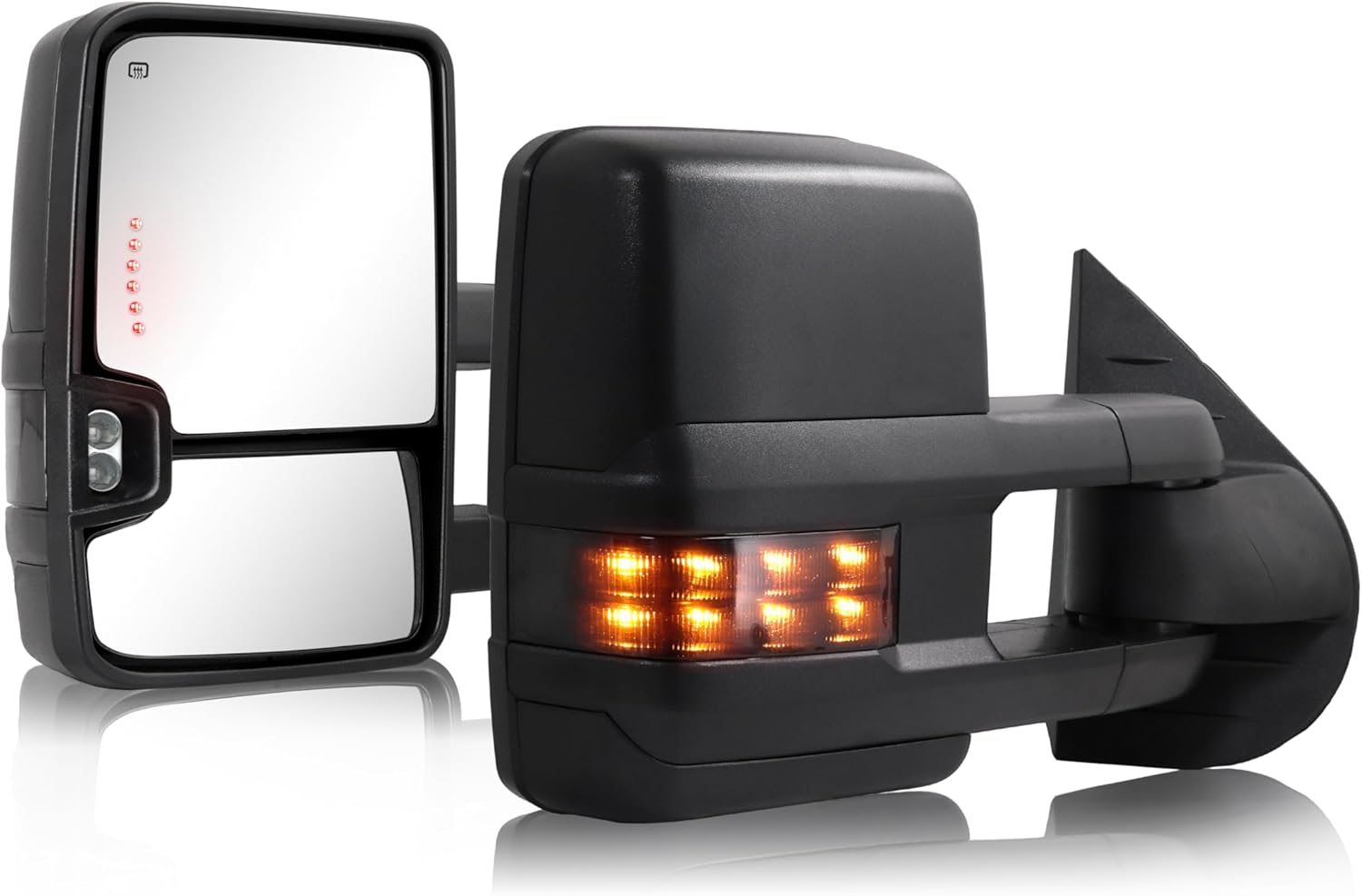 {"about_product": ["Application: Fit for 2007 Chevy Silverado GMC Sierra New Body Style; 2008-2013 Chevy Silverado GMC Sierra 1500 2500HD 3500HD; 2007-2013 Chevy Avalanche 1500; 2007-2014 Chevy Suburban; 2007-2014 Chevy Tahoe; 2007-2014 GMC Yukon (Detailed Application Below)", "Functions: Adjustable Power glass + Heated Defrost + LED Turn Signal Lights On-Mirror & On-Back + Backup Lamp + Dual Glass (Flat Glass + Convex Glass) + Manual Telescoping & Folding", "Excellent Quality: Our tow mirrors built to strict quality control standards, will not shake or vibrate when driving. Made by ultra strong aluminium bases, light weight black sturdy textured ABS plastic cases", "After-service: If any questions, our Customer Service Team will try our best to solve it for you at any time", "What You Get: A pair of towing mirrors (Include both Left Side and Right Side)"], "product_description": null, "product_information": {"UPC": "782901729906", "ASIN": "B085KVRM4H", "Size": "DOTTED LIGHT", "Brand": "Sanooer", "Color": "Unpainted", "Shape": "Rectangular", "Exterior": "Unpainted", "Fit Type": "Vehicle Specific Fit", "Bulb Type": "LED", "Lift Type": "Manual", "Item Weight": "20.7 pounds", "Manufacturer": "Sanooer", "Mounting Type": "Door Mount", "Special Feature": "Heated function, LED turn signal lights on-mirror & back, backup light, extendable.", "Special Features": "Heated function, LED turn signal lights on-mirror & back, backup light, extendable.", "Best Sellers Rank": "#13,656 in Automotive (See Top 100 in Automotive) #9 in Towing Hitch Towing Mirrors", "Item model number": "SN-CHEVY", "Auto Part Position": "Front Left, Front Right", "Package Dimensions": "21.4 x 14.8 x 14.6 inches", "Automotive Fit Type": "Vehicle Specific Fit", "Included Components": "A pair of towing mirrors", "Date First Available": "May 23, 2020", "Manufacturer Part Number": "7255B-07-EASH", "Lens Curvature Description": "Convex, Flat", "Is Discontinued By Manufacturer": "No"}, "product_details": {"Size": "DOTTED LIGHT", "Brand": "Sanooer", "Color": "Unpainted", "Fit Type": "Vehicle Specific Fit", "Material": "Acrylonitrile Butadiene Styrene (ABS), Glass", "Mounting Type": "Door Mount", "Special Feature": "Heated function, LED turn signal lights on-mirror & back, backup light, extendable.", "Auto Part Position": "Front Left, Front Right", "Included Components": "A pair of towing mirrors", "Vehicle Service Type": "(function(f) {var _np=(window.P._namespace(\"DetailPageProductOverviewTemplatesJava\"));if(_np.guardFatal){_np.guardFatal(f)(_np);}else{f(_np);}}(function(P) { P.when('A').execute(function(A){ A.on('a:truncate:po-attribute-truncate-3:updated', function(data) { var isTruncated = !data.truncateInstance.getIfTextFits(); var seeMoreElement = document.getElementById('po-attribute-see-more-id-3'); if(seeMoreElement) { seeMoreElement.style.display = isTruncated ? '' : 'none'; } }) }); })); 2007-2013 Chevy Silverado DURAMAX TURBO-DIESEL type 2007.5 Chevy Silverado GMC Sierra New Body Style 2007-2013 Chevy Tahoe Suburban Avalanche 2007-2013 GMC Yukon Yukon XL Yukon Denali 2008-2013 Chevy Silverado GMC Sierra 1500 2500 2008-2014 Chevy Silverado GMC Sierra 2500HD 3500HD See more"}}