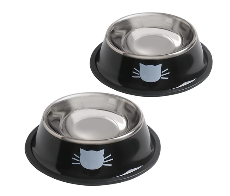 {"about_product": ["2Pcs Cat Bowls Metal Cat Bowl for dogs, cats, or hamsters, rabbits, especially kittens,puppies,small animals,etc.Stackable for easy storage or travel.", "Durable Stainless-steel Cat Bowls:Cat food bowl small cat bowl are made safe material and does not BPA,Anti-Corrosion and rust resistant; doesn’t hold odors.High quality material of this pet food bowl makes it bite resistant, and non-toxic for your pets.Compared with ceramic pet bowls, stainless steel dog bowls are lighter, more durable, and shatter proof. Compared with plastic cat bowls, stainless steel cat bowls are easier to clean. Stainless steel cat bowl is the best choice!", "Holds up to 16 ounces,which can meet the requirements of food and water at the same time.Each cat dishes measures 5.9\" Dia x 1.4\" H.Which is best for small dogs and cats, which prevent them from over eating or eating less.Durable and sanitary; the cat food bowls perfect for dry kibble, wet food, treats.Shallow and wide cat food bowls allows your cat to get the food easily, which prevents whisker fatigue and keeps his/her face clean.", "Anti-skid Base;No-tip design:Metal Cat Bowl Cat Food Bowls rubber base protects floors and prevents bowl from sliding while your pet eats.The rubber ring can be easily removed before cleaning the cat bowl to prevent bacterial growth.", "Easy to Clean :This Pet food bowls is easily be cleaned with mild dish soap and warm water, dishwasher safe, it's convenient for you.Purchasing from us, you will get high quality bowls as you wish."], "product_description": null, "product_information": {"ASIN": "B085Q13BJG", "Color": "Black+Grey", "Style": "cat", "Material": "Stainless Steel", "Brand Name": "Rapsrk", "Department": "Pet", "Directions": "small cat", "Model Name": "Cat Bowls", "Item Weight": "5.6 ounces", "Manufacturer": "RAPSRK", "Item model number": "GDUU-1", "Included Components": "Clip", "Breed Recommendation": "Medium", "Date First Available": "August 11, 2020", "Item Dimensions LxWxH": "6.3 x 6.3 x 1.6 inches", "Target Audience Keyword": "dogs, house-cats", "Specific Uses for Product": "Active", "Item Package Dimensions L x W x H": "9.13 x 7.8 x 2.4 inches"}, "product_details": {"Brand": "Rapsrk", "Color": "Black+Grey", "Material": "Stainless Steel", "Target Species": "Cat", "Special Feature": "Nonslip"}}
