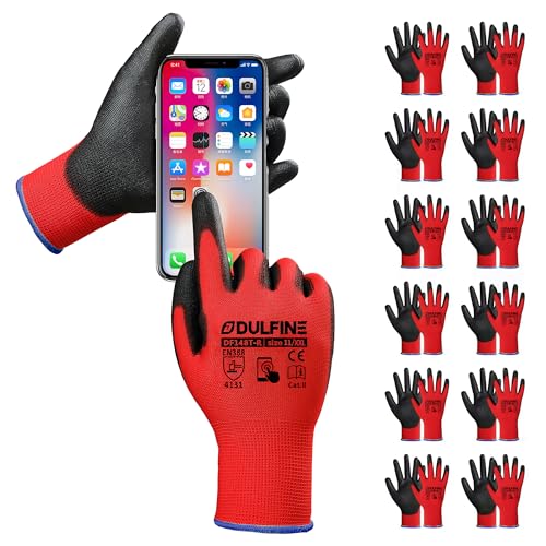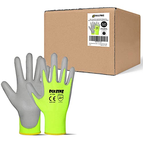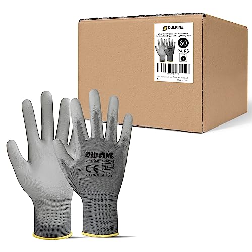 {"about_product": ["COMFORTABLE:13 Guage Premium black nylon seamless knitted shell provides Bare Hand Sensitivity and Great Breathability! Light Weight with Good Grip! Thin enough to feel everything", "SUPERIOR PROTECTION:Gray Polyurethane coating offers excellent abrasion resistance and superior GRIP performance", "MORE:Knitted Wrist prevent dirt and debris from entering the gloves. CE CERTIFICATED EN388:2003 4131", "IDEAL FOR:General Purpose,DIY, Assembly, Auto Repairing, Gardening and other Light Duty work. Not recommend for long term heavy lifting use", "Recommend washing gloves in tempered water not exceeding 104oF or 40oC. A mild non-ionic laundry soap or detergent should be used. Wash in a 5-10 minute cycle time. Rinse in cold water. Tumble dry at temperature not exceeding 140oF or 60oC"], "product_description": null, "product_information": {"ASIN": "B08868CPFN", "Size": "Large", "Color": "Black", "Pattern": "Solid", "Material": "Polyethylene", "Thickness": "3 Inches", "Item Weight": "7 ounces", "Part Number": "DF148L", "Manufacturer": "DULFINE", "Power Source": "electric", "Number Of Pieces": "24", "Special Features": "Lightweight", "Best Sellers Rank": "#937 in Tools & Home Improvement (See Top 100 in Tools & Home Improvement) #13 in Safety Work Gloves", "Item model number": "DF148L", "Product Dimensions": "9.45 x 5.91 x 3.15 inches", "Batteries Included?": "No", "Batteries Required?": "No", "Date First Available": "May 6, 2020"}, "product_details": {"Size": "Large", "Brand": "DULFINE", "Color": "Black", "Material": "Polyethylene", "Special Feature": "Lightweight"}}