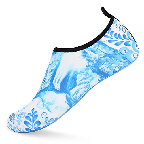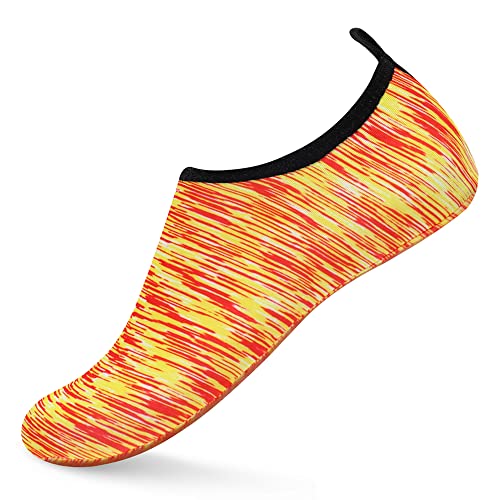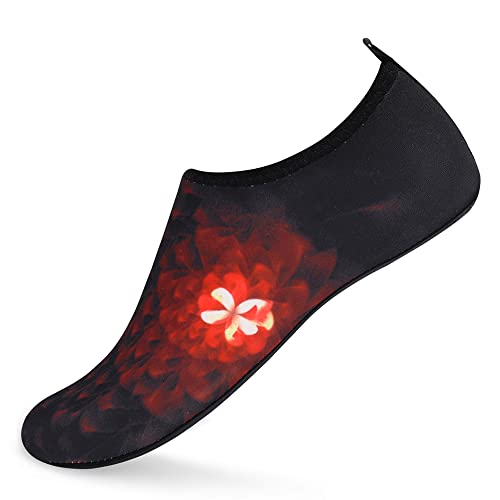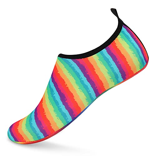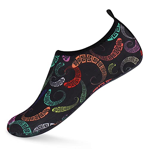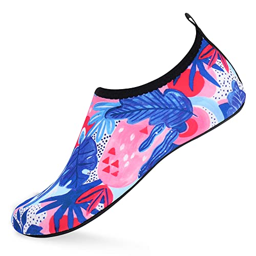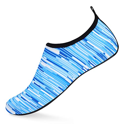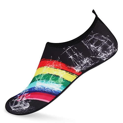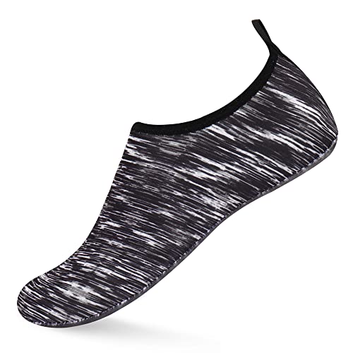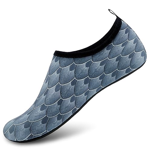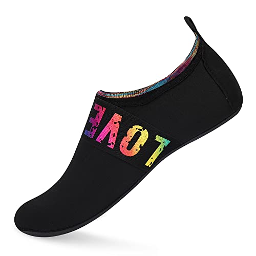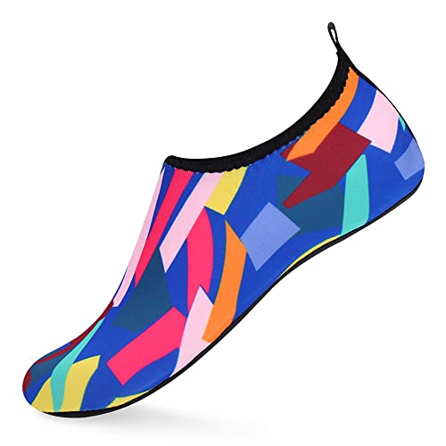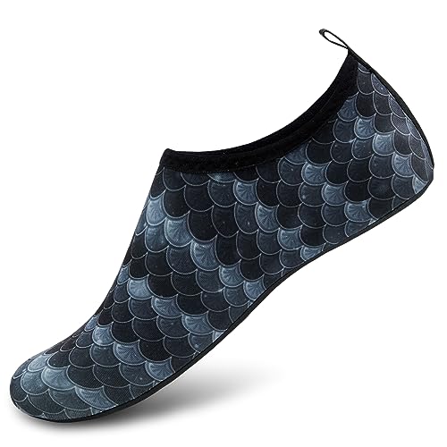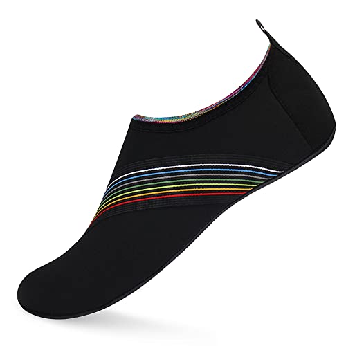 {"about_product": ["1. Safety: Anti-slip sole made of high quality material, light and durable. Thickened sole and breathable insoles with shock absorption performance, protect your feet from stepping on rock and stone.", "2. Convenience: Quick-dry water shoes, smooth neck design of aqua socks prevents chafing when wearing our water shoes. It is convenient to wear and take off. Lightweight and compressible for easy packing.", "3. Comfortable Feeling: The water sport swim shoes are ultra lightweight style and more breathable. Upper with stretch fabric for fast draining and cross ventilation, give excellent flexible and comfortable.", "4. Occasions: The water barefoot shoes for men women. Perfect for beach, swimming, surf, pool, sailing, boating, yoga, cycling, jogging, walking, fishing, car-washing, and driving.", "5. Various size and color available: Size of Swim Shoes for Women and Men.( For the length, Please Refer to Product Description). There are a variety of colorful styles to choose."], "product_description": null, "product_information": {"ASIN": "B09H3BS4QD", "Department": "unisex-adult", "Manufacturer": "ANLUKE", "Customer Reviews": "4.4 4.4 out of 5 stars \n\n (47,150)", "Product Warranty": "For warranty information about this product, please click here", "Best Sellers Rank": "#11,107 in Clothing, Shoes & Jewelry (See Top 100 in Clothing, Shoes & Jewelry) #11 in Women's Water Shoes", "Package Dimensions": "11.85 x 5.71 x 1.26 inches; 5.93 ounces", "Date First Available": "January 9, 2018"}, "product_details": {"Origin": "Imported", "Closure type": "Pull-On", "Sole material": "Rubber", "Outer material": "92% polyester+8% spandex Upper and Rubber sole"}}
