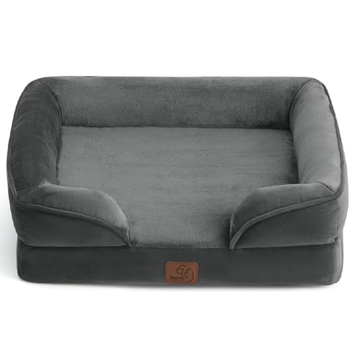 {"about_product": ["Orthopedic Support: Our orthopedic cat sofa is designed to give your pet unparalleled support for a deep, dreamy sleep. High-density egg-crate foam helps distribute weight evenly and provides the perfect amount of pressure relief and joint support.", "Enhanced Comfort: The 4-sided bolster design promotes ultimate comfort and security, offering your pet a variety of cozy positions to snuggle. The cushioned bolster shape is deeply filled to support your pet’s head and neck for a more restful sleep. And the lowered entrance protects your pet's knees and promotes accessibility.", "Waterproof & Easy Care: The durable foam mattress is encased in a waterproof liner to fully protect the foam from spills, water damage, or accidents. Remove the zippered cover in seconds and machine wash for easy care.", "Tested & Pet Approved: This supportive Pet bed is wrapped in our velvety soft flannel fabric, offering soothing comfort that your furry friend will find cozy and relaxing.", "Pet Safe Materials: This standard 100 by OEKO-TEX(24.HCN.46956) certified pet bed consists of CertiPUR-US certified foam and luxurious flannel, creating a safe and comfortable space for your furry friend to rest and recharge. The non-skid bottom reduces slips and protects your dog."], "product_description": null, "product_information": {"ASIN": "B089RGDQBB", "Size": "35\"L x 25\"W x 6.5\"Th", "Color": "Grey", "Material": "Polyester, Polyurethane foam", "Brand Name": "Bedsure", "Item Weight": "5.63 pounds", "Manufacturer": "Bedsure Comfy Pet", "Number of Items": "1", "Care Instructions": "Machine Wash", "Item model number": "CA000052G0L", "Breed Recommendation": "Large", "Date First Available": "June 10, 2020", "Age Range Description": "All Life Stages", "Item Dimensions LxWxH": "35 x 7 x 25 inches", "Target Audience Keyword": "dogs", "Item Package Dimensions L x W x H": "16.77 x 12.95 x 7.36 inches"}, "product_details": {"Brand": "Bedsure", "Material": "Polyester, Polyurethane foam", "Special Feature": "Easy to Clean, Environmentally Friendly, Orthopedic, Removable Cover, Waterproof", "Product Dimensions": "35"L x 25"W x 6.5"Th", "Breed Recommendation": "Large"}}