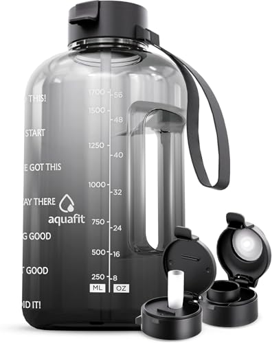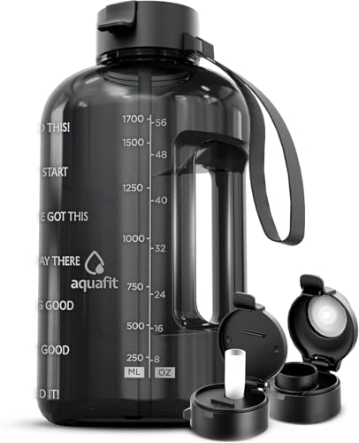 {"about_product": ["Track how much you drink - Our BPA Free one gallon water bottle comes with time markers on the side so you can see your daily water intake and stay on track meet your health and fitness goals.", "Large 1 gallon capacity - Our 1 gallon water bottle with straw is durable, light and portable. Drink all the water you need and forget about refills: this large water bottle is perfect for an on-the-go lifestyle!", "2 different lids included - This 1 gallon water jug includes 2 interchangeable 100% leak-proof lids, one with a silicone straw and one without. Switch style according to your drinking preference, activity and more!", "Bonus accessories - This water bottle with straw includes a useful handling strap as well as two extra lids. The motivational water bottle of your dreams!", "BPA-free & user friendly design - Our 128 oz reusable water bottle comes with a wide mouth, a big handle for easy grabbing, and is made of 100% BPA-free plastic."], "product_description": null, "product_information": {"ASIN": "B08FXD5SNC", "Brand": "AQUAFIT", "Color": "Gray", "Shape": "Oval", "Style": "128 oz - 2 Lids", "Theme": "Sport", "Capacity": "8 Pounds", "Material": "Plastic", "Unit Count": "1.0 Count", "Bottle Type": "Water Bottle", "Finish Type": "Glossy", "Item Weight": "1 pounds", "Reusability": "Reusable", "Manufacturer": "AQUAFIT", "Number of Items": "1", "Special Feature": "Carrying Loop, Flip Top, Integrated Spout, Leak Proof, Straw", "Best Sellers Rank": "#1,179 in Sports & Outdoors (See Top 100 in Sports & Outdoors) #59 in Water Bottles", "Item model number": "1 Gallon Water Bottle", "Material Type Free": "Bisphenol A (BPA) Free", "Product Dimensions": "6.3\"W x 12\"H", "Package Information": "Bottle", "Date First Available": "November 16, 2020", "Product Care Instructions": "Fridge Safe, Hand Wash Only", "Specific Uses For Product": "Cold Drinks", "Recommended Uses For Product": "Gym, Cycling, Sports, Camping, Yoga, Water Sports, Swimming, Hiking, Walking, Running, Indoor, Work, Commute", "Is Discontinued By Manufacturer": "No"}, "product_details": {"Brand": "AQUAFIT", "Color": "Gray", "Capacity": "8 Pounds", "Material": "Plastic", "Bottle Type": "Water Bottle"}}