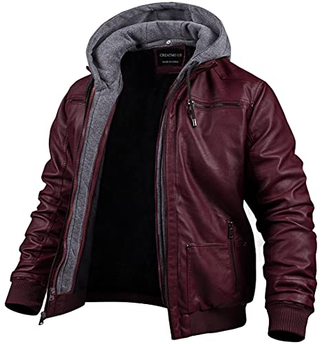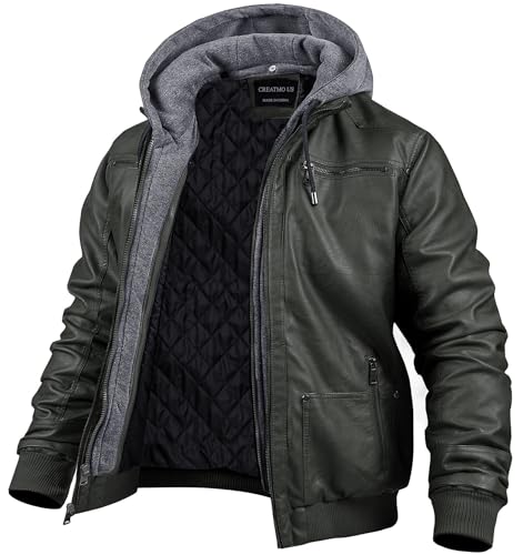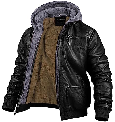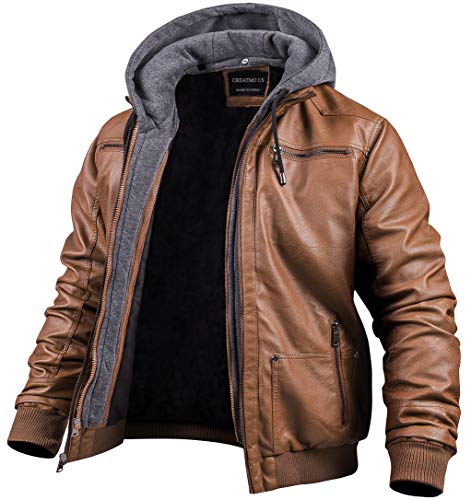 {"about_product": ["▶ 2 style design--Leather coat with removable hooded is design for different looks between stylish hooded riding jacket and casual stand collar winter jacket.", "▶ Windproof details--Leather hoodie is consist of inside removable knitted hood with placket and out zip closure placket provide great wind resistant.Thick lining, excellent seam,rib collar, cuffs and hem are comfortable as well as warm to against the skin and keep wind out.", "▶ Practical multi pockets--Men's Fall bomber coat with 2 zippered hand pockets, 2 zippered chest pockets, 1 internal pocket, great for keeping keys, wallet & small items.", "▶ Classic PU hoodie jacket--Practical and durable winter jacket suitable for work, daily casual wear, also for motorcycling, biking, driving, racing and outdoor activities.", "▶ Customer Service--This quilted leather jacket is perfect for cold weather. If you have any questions, please feel free to contact us, we will provide 100% satisfaction customer service."], "product_description": null, "product_information": {"ASIN": "B08JKQWJVT", "Department": "Men", "Customer Reviews": "4.4 4.4 out of 5 stars \n\n (2,376)", "Product Warranty": "For warranty information about this product, please click here", "Best Sellers Rank": "#27,489 in Clothing, Shoes & Jewelry (See Top 100 in Clothing, Shoes & Jewelry) #4 in Men's Leather & Faux Leather Jackets & Coats", "Product Dimensions": "4 x 4 x 4 inches; 14.11 ounces", "Date First Available": "September 18, 2020"}, "product_details": {"Origin": "Imported", "Fabric type": "Faux Leather", "Care instructions": "Machine Wash"}}