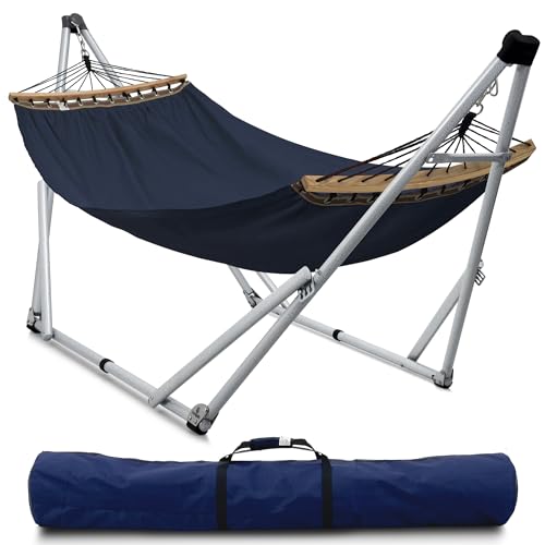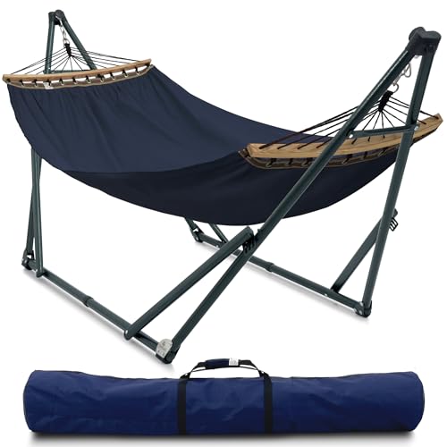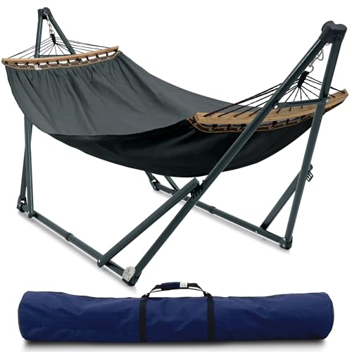 {"about_product": ["? 600 POUNDS CAPACITY 30 SECONDS SET UP HAMMOCK STAND: Made of sturdy electrostatic powder coated steel for high endurance. Rubber feet stabilize and minimize any scratching, the perfect resting station in your home or outdoor, garden, camping, trips", "? PATENTED INNOVATIVE DESIGN: Proudly patented for its smart, tool- free setup in just 30 seconds, the Tranquillo Hammock with stand offers effortless outdoor relaxation. Easily adjustable for perfect comfort, built with durable materials for long-lasting use", "? DURABLE AND SMOOTH BALL BEARING: Make sure all rocking movements are flawless and noiseless. Take 5 seconds to expand the stand to your preferences. The free stand hammock you’d ever want for a complete soothing relaxation", "? 2-LAYERED POLYESTER EXPANDABLE BREATHABLE HAMMOCK NET: Easily accommodates 2 persons. Stitched-in light, flexible yet durable spreader bars prevent uncomfortable cocooning and keep the net stable as you move", "? DURABLE HARDWARE makes a light yet versatile companion on any trips. Carry bag included to easily store and transport your Hammock Stand and Net. Quick, simple and easy to set up anywhere. Everything is in the box for an effortless assembly"], "product_description": null, "product_information": {"ASIN": "B08K2GH6GM", "Item Weight": "28.9 pounds", "Manufacturer": "HMD INTERNATIONAL TRADING JOINT STOCK COMPANY (Tranquillo)", "Best Sellers Rank": "#20,841 in Patio, Lawn & Garden (See Top 100 in Patio, Lawn & Garden) #43 in Hammocks", "Item model number": "D5BS", "Product Dimensions": "116 x 32.8 x 39.3 inches", "Date First Available": "September 25, 2020"}, "product_details": {"Brand": "Tranquillo", "Color": "1. Black", "Material": "Polyester, Steel", "Product Dimensions": "121.3"L x 39"W", "Maximum Weight Recommendation": "6E+2 Pounds"}}