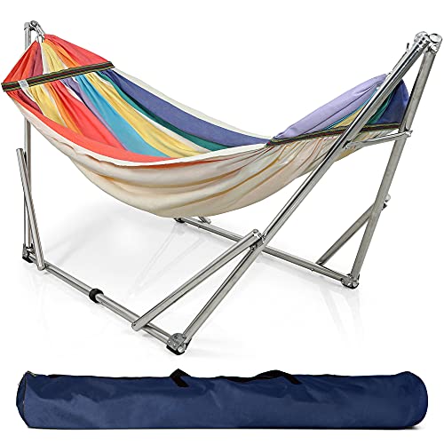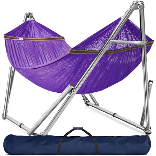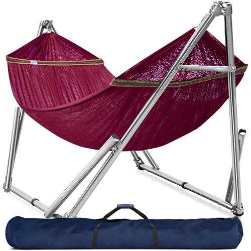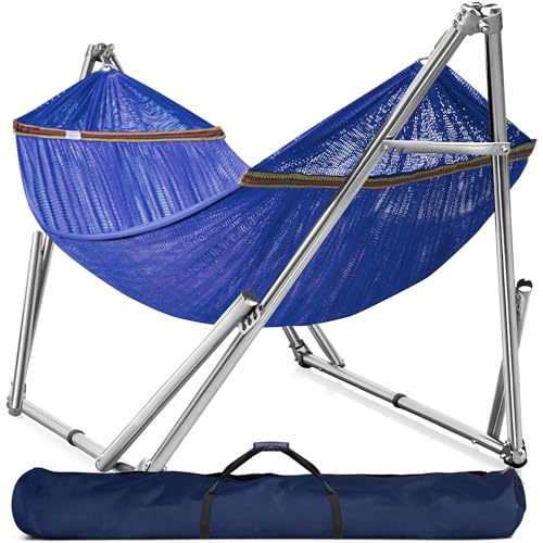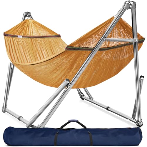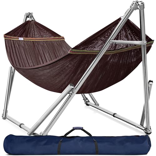 {"about_product": ["STURDY STAINLESS STEEL 650 LBS CAPACITY HAMMOCK STAND: High grade solid 201 stainless steel for high endurance. Rubber feet stabilize and minimize scratching, making the adjustable hammock stand the perfect resting station in your home or outdoor", "30s SET UP REVOLUTIONARY NOTCH DESIGN: Collapsible adjustable offer maximal compatibility to cater all heights and preferences. The versatile design of the camping hammock offers endless customizations for relaxing, or taking to your camping trips", "DURABLE AND SMOOTH BALL BEARING: Make sure all rocking movements are flawless and noiseless. Take 5 seconds to expand the stand to your preferences. The free stand hammock you’d ever want for a complete soothing relaxation", "2-LAYERED POLYESTER EXPANDABLE BREATHABLE HAMMOCK NET: Easily accommodates 2 persons. Stitched-in light, flexible yet durable spreader bars prevent uncomfortable cocooning, mold to your body contour, and keep the net stable as you move", "DURABLE HARDWARE makes a light yet versatile companion on any trips. Carry bag included to easily store and transport your Hammock Stand and Net. Quick, simple and easy to set up anywhere. Everything is in the box for an effortless assembly"], "product_description": null, "product_information": {"ASIN": "B08K2YB5MR", "Item Weight": "28 pounds", "Manufacturer": "HMD INTERNATIONAL TRADING JOINT STOCK COMPANY (Tranquillo)", "Best Sellers Rank": "#75,346 in Patio, Lawn & Garden (See Top 100 in Patio, Lawn & Garden) #128 in Hammocks", "Item model number": "AZ24", "Product Dimensions": "116 x 32.8 x 39.3 inches", "Date First Available": "September 25, 2020"}, "product_details": {"Brand": "Tranquillo", "Color": "Black", "Material": "Polyester, Stainless Steel", "Product Dimensions": "121"L x 39"W", "Maximum Weight Recommendation": "650 Pounds"}}