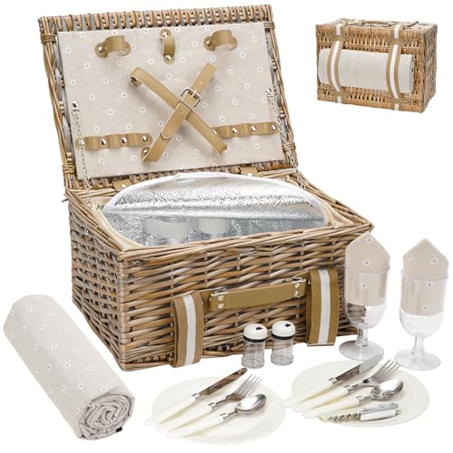 {"about_product": ["Premium Large Picnic Basket: Measuring Dimensions approximately 16-17.5\" x 11-12\" x 7.5\" (slight variations may occur between batches for optimized functionality), this spacious picnic basket is designed to comfortably accommodate all your outdoor dining essentials for families or couples", "Upgraded Essentials: Includes 4 stainless steel utensils (knife, fork, spoon), 4 durable plates (7\" melamine), 4 wine glasses (unbreakable plastic), 4 linen napkins, 1 bottle opener", "Unique Dual Canvas Straps: The distinctive dual canvas strap design adds a touch of elegance while enhancing the basket's overall appeal. The charming cherry print on a linen background gives it a refreshing look that stands out for any picnic occasion", "Sturdy Handmade Wicker: Crafted from high-quality willow, our naturally made wicker picnic basket is strong and durable. Its classic feel provides a relaxing outdoor dining experience, making it both practical and stylish", "Waterproof Picnic Blanket: Includes a large waterproof picnic blanket (57 x 47 inches) that comfortably fits 4-6 people. You can use the blanket with the basket or separately"], "product_description": null, "product_information": {"UPC": "193499408201", "ASIN": "B08KZHLXBM", "Brand": "G GOOD GAIN", "Color": "Beige Flower", "Style": "With Cooler for 4", "Capacity": "17.5 Inches", "Material": "Willow", "Item Weight": "8.8 pounds", "Manufacturer": "G GOOD GAIN", "Best Sellers Rank": "#12,769 in Patio, Lawn & Garden (See Top 100 in Patio, Lawn & Garden) #18 in Picnic Baskets", "Item model number": "C15-008GA-4", "Product Dimensions": "12\"D x 16\"W x 7.5\"H", "Date First Available": "October 10, 2020"}, "product_details": {"Brand": "G GOOD GAIN", "Color": "Beige Flower", "Material": "Willow", "Item Weight": "4 Kilograms", "Product Dimensions": "12"D x 16"W x 7.5"H"}}