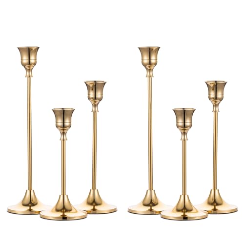{"about_product": ["PACKAGE INCLUDES: 2× 5.9\"(15cm) & 2× 7.3\"(18.5cm) & 2 × 9.3\"(23.5cm) height centerpieces candlestick holder. The base diameter is 2.68\"/6.8cm wide. Candles are not included.", "EXQUISITE DESIGN: They are golden brass color with a brushed metal design, vintage & extremely exquisite feel. They are slender, classic, heavy and with a good weight. This candle holder set combines aesthetics and practicality together,", "APPLICATIONS: This taper candle holders set is suitable for candle sticks and taper candles. They can be placed in living room, bedroom, bar, at your dinner table or coffee table etc. to create a romantic atmosphere for wedding, home decor, ceremony and anniversary.", "FIT FOR STANDARD SIZED TAPER CANDLES: Designed to fit any standard sized taper candles. It has good properties of palladium coating, such as bright surface, high glisten rate, low contact resistance, high rigidity, antifriction, anticorrosion and so on.", "IDEAL GIFT FOR: This golden brass candlestick holders set is not only a perfect vintage ornament, it is also a perfect gift for birthday, anniversary, Christmas, New Year, Thank-you or other special occasions to your relatives and friends"], "product_description": null, "product_information": {"ASIN": "B08MLGXSPH", "Brand": "NUPTIO", "Color": "Gold", "Theme": "Wedding", "Material": "Aluminum", "Occasion": "Anniversary, Birthday, Housewarming, Mothers Day, Wedding And Engagement", "Finish Type": "Brushed", "Item Weight": "1.07 pounds", "Manufacturer": "Fuzhou cangshan", "Item Diameter": "2.7 Inches", "Mounting Type": "Tabletop", "Number of Pieces": "2", "Best Sellers Rank": "#2,604 in Home & Kitchen (See Top 100 in Home & Kitchen) #1 in Candlestick Holders", "Product Dimensions": "2.7\"L x 2.7\"W x 9.3\"H", "Date First Available": "November 3, 2020", "Indoor/Outdoor Usage": "Indoor, Outdoor"}, "product_details": {"Brand": "NUPTIO", "Color": "Gold", "Material": "Aluminum", "Finish Type": "Brushed", "Product Dimensions": "2.7"L x 2.7"W x 9.3"H"}}