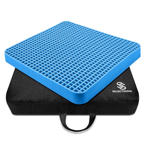 {"about_product": ["[DOUBLE-THICK SUPPORT & COMFORT] High-grade, double-thick honeycomb gel cushion provides superior pressure-relieving support and stays soft on pressure points for all-day sitting comfort!", "[COOLING BREATHABLE DESIGN] Open-cell honeycomb gel boosts airflow to keep you cool and dry. Ventilated mesh cover stays temperature-neutral—no more seat sweat like with dense memory-foam cushions!", "[ERGONOMIC PAIN & PRESSURE RELIEF] Supports lower-back, sciatica, tailbone, coccyx, and hip areas—helping reduce strain and numbness during long hours at the office, in the car, or at home - relieving pressure where it matters most!", "[LIGHTWEIGHT & PORTABLE] Lightweight, foldable design lets you bring lasting comfort anywhere—office chair, car seat, wheelchair, airplane, stadium, or floor seating for travel and events!", "[WATER-RESISTANT + 2 WASHABLE COVERS] Durable gel cushion works indoors and outdoors—ideal for gardening, patio seating, boating, or travel. Includes BONUS second machine-washable, breathable cover with non-slip base!", "[VERSATILE CUSHION FOR ALL SEATS] Great for students, gamers, professionals, seniors, or recovery use—relieves discomfort from long sitting and doubles as a supportive booster cushion in cars, at your desk, or at the table!"], "product_description": null, "product_information": {"UPC": "709402212355", "ASIN": "B08P3TRZS5", "Size": "16.5 X 14.5 X 1.6 inches", "Brand": "SelectSoma", "Color": "Standard Size Blue Gel", "Shape": "Rectangular", "Pattern": "Solid", "Use for": "Back, Buttocks", "Variety": "Office Seat Cushion, Wheelchair Cushion, Car Seat Cushion, Travel Cushion", "Material": "Premium TPE Gel", "Model Name": "Small Gel Seat Cushion", "Unit Count": "1.0 Count", "Fabric Type": "Polyester", "Item Weight": "2.4 pounds", "Manufacturer": "SelectSoma", "Fill Material": "Premium TPE Gel", "Special Feature": "Double layer thickness, Maintains cool temperature, Non-slip bottom surface, Pressure relief design, Removable washable cover", "Material Feature": "Breathable", "Number of Pieces": "1", "Best Sellers Rank": "#3,477 in Office Products (See Top 100 in Office Products) #26 in Back Cushions & Seat Cushions", "Item model number": "Gelcushion-reg-v2", "Material Type Free": "Latex Free", "Product Dimensions": "16.5\"L x 14.5\"W", "Date First Available": "April 2, 2021", "Age Range (Description)": "All Ages", "Item Firmness Description": "Soft", "Product Care Instructions": "Hand Wash Inner Gel, Machine Wash Cushion Cover", "Specific Uses For Product": "Sitting, Office chair, wheelchair, car seat, truck seat, patio chairs, dining chairs, airplane seats, stadium seating, floor seating, Back Pain, Sciatica, Tailbone Pain, Buttock Pain, Hip Pain", "Recommended Uses For Product": "Sitting"}, "product_details": {"Size": "16.5 X 14.5 X 1.6 inches", "Brand": "SelectSoma", "Color": "Standard Size Blue Gel", "Fill Material": "Premium TPE Gel", "Special Feature": "(function(f) {var _np=(window.P._namespace(\"DetailPageProductOverviewTemplatesJava\"));if(_np.guardFatal){_np.guardFatal(f)(_np);}else{f(_np);}}(function(P) { P.when('A').execute(function(A){ A.on('a:truncate:po-attribute-truncate-1:updated', function(data) { var isTruncated = !data.truncateInstance.getIfTextFits(); var seeMoreElement = document.getElementById('po-attribute-see-more-id-1'); if(seeMoreElement) { seeMoreElement.style.display = isTruncated ? '' : 'none'; } }) }); })); Double layer thickness, Maintains cool temperature, Non-slip bottom surface, Pressure relief design, Removable washable cover See more"}}