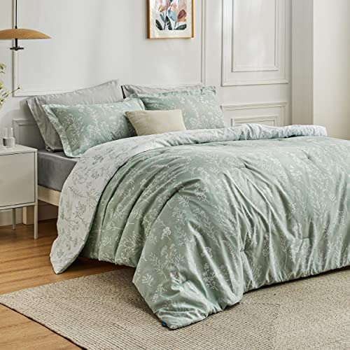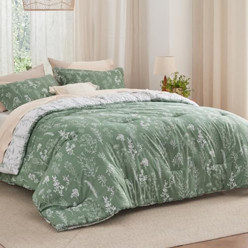 {"about_product": ["Unique Reversible Design: This floral comforter set is reversible with contrasting colors. Simply flip the comforter or the pillow shams over to refresh your interior decor. The vivid floral and tree branch patterns add an elegant touch and a botanical vibe to your sleeping space.", "Optimal Comfort: Featuring Bedsure's thoroughly tested, high-grade down alternative filling blend to provide right warmth while ensuring optimal support, this polyester microfiber comforter set offers exceptional softness so you can enjoy a restful night's sleep all seasons.", "A Perfect Holiday Gift for Your Loved Ones: Give the gift of coziness and freshness to your loved ones, whether it’s for Mother’s Day, Valentine’s Day, Christmas, or other holidays.", "Easy to Maintain: This fluffy comforter set is durable and easy to maintain. Its subtle yet dense stitches prevent the filling from shifting. This comforter is machine washable. Simply machine wash in cold water on a gentle cycle for a like-new restoration.", "Certified for Safety: This comforter set is Standard 100 by OEKO-TEX certified for meeting the highest testing criteria for harmful chemicals and has been found harmless for humans.", "What You Can Get: This Bedsure queen comforter set includes 1 comforter (90\" x 90\") and 2 pillow shams (20\" x 26\" + 2\")."], "product_description": null, "product_information": {"UPC": "841745174157", "ASIN": "B08P4SLD52", "Size": "Queen", "Brand": "Bedsure", "Color": "01 - Sage Green", "Style": "Modern", "Theme": "Floral", "Pattern": "Floral", "Seasons": "All, Fall, Spring, Summer", "Material": "Polyester", "Fabric Type": "Shell: 100% Polyester", "Item Weight": "6.17 pounds", "Manufacturer": "Bedsure Collections", "Number of Pieces": "3", "Best Sellers Rank": "#1,356 in Home & Kitchen (See Top 100 in Home & Kitchen) #23 in Bedding Comforter Sets", "Item model number": "Comforter Set-Plants", "Pillowcase Length": "26 Inches", "Product Dimensions": "90 x 90 x 1 inches", "Included Components": "Comforter, Pillow Sham", "Date First Available": "February 19, 2021", "Item dimensions L x W x H": "90 x 90 x 1 inches", "Product Care Instructions": "Do Not Bleach, Machine Wash"}, "product_details": {"Size": "Queen", "Brand": "Bedsure", "Color": "01 - Sage Green", "Style": "Modern", "Included Components": "Comforter, Pillow Sham"}}