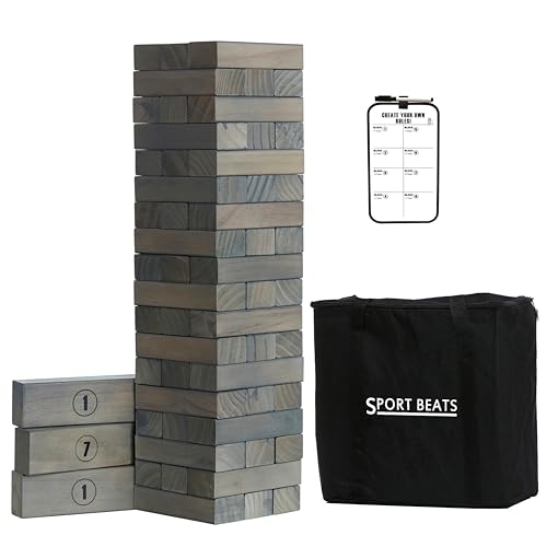 Outdoor Games Large Tower Stacking Game, 54 Wooden Blocks, Stack Up to 4 Ft Tall, Includes Carry Bag and Scoreboard, Backyard and Beach Lawn Yard Fun for Adults and Family