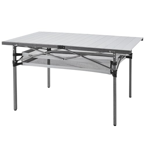 {"about_product": ["【Large Folding Camping Table】The folding camping table spacious desktop area (52.5 × 27.5 inches) is large enough for 4-6 people,27.6 inches height and triangle structure stent design of camping table can give you enough and comfortable space to put your legs.", "【Portable Lightweight Camping Table】The camping tables that fold up lightweight only 17.6 lbs and after folded the size is 34.9 x 8.9 x 8inches, which make it portable and light enough to be carried around your trip, fits most car trunks. The carry bag for folding camping table will be easy to take with the handle.", "【Multifunctional Folding Table】King Camp portable camping table has multifunctional uses, both indoor and outdoor, including picnic table, beach table and camping kitchen table, which are used for camping, beach, tourism, sports events,RV outside and fishing.", "【Easy To Assemble Roll Up Camping Table】 With the split type design for the board and bracket, the portable folding picnic table top can be rolled up and the steel frame with safe lock can be folded,so it is easy and safe to install or fold at anytime to help you save much time.", "【Durable Aluminum Camping Table】This folding table camping is made of thicker aluminum alloy and anodized treatment, which is rust free, corrosion-resistant,easy to clean.The aluminum grill table adopts metal material contact point and triangular steel structure design to ensure stable use."], "product_description": null, "product_information": {"ASIN": "B08S7B687W", "Base": "Metal", "Size": "L 54\" Extended Pro", "Color": "#6p Silver/Black - 53\" × 27\"", "Shape": "Rectangular", "Base Type": "Leg", "Leg Style": "Straight Leg", "Top Color": "Black/Silver", "Base Color": "Black/Silver", "Brand Name": "KingCamp", "Item Width": "53.5 Inches", "Model Name": "KC2133_BLACK/SILVER-uskc", "Style Name": "Seamless Pro", "Item Height": "24 inches", "Item Weight": "17.6 Pounds", "Manufacturer": "KingCamp", "Model Number": "KC2133_BLACK/SILVER-uskc", "Table Design": "Dining Table", "Material Type": "Aluminum", "Warranty Type": "1 year warranty", "Item Type Name": "Table", "Extended Length": "53.5 Inches", "Handle Material": "Oxford", "Number of Items": "1", "Frame Joint Type": "Split Joint", "Furniture Finish": "Aluminum", "Seating Capacity": "6", "Best Sellers Rank": "#68,316 in Sports & Outdoors (See Top 100 in Sports & Outdoors) #95 in Camping Tables", "Number Of Shelves": "1", "Top Material Type": "Aluminum", "Handle Finish Type": "smooth", "Is Stain Resistant": "Yes", "Tabletop Thickness": "0.5 Inches", "Frame Material Type": "Aluminum", "Included Components": "1 table, 1 carry bag", "Base To Top Distance": "27.5 Inches", "Indoor Outdoor Usage": "Indoor, Outdoor", "Age Range Description": "Adult", "Is the item resizable?": "Yes", "Furniture Base Movement": "Glide", "Ground To Item Distance": "27.5 Inches", "Item Dimensions D x W x H": "58\"D x 24\"W x 24\"H", "Specific Uses For Product": "Camping, Dining, Picnicking, Outdoor Activities", "Includes All Assembly Tools": "No", "Unextended Seating Capacity": "4", "Recommended Uses For Product": "Dining, Picnicking, Camping", "Maximum Weight Recommendation": "300 Pounds", "Tools Recommended For Assembly": "Allen Key, Screw Driver", "Manufacturer Warranty Description": "1 year manufacturer."}, "product_details": {"Brand": "KingCamp", "Item Weight": "17.6 Pounds", "Frame Material": "Aluminum", "Product Dimensions": "58"D x 24"W x 24"H", "Maximum Weight Recommendation": "300 Pounds"}}