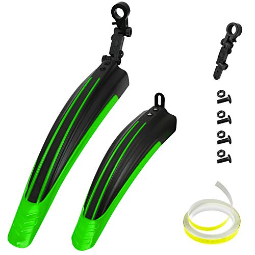 {"about_product": ["?Durable Anti-Pressure Material: Made of durable PP material, our bike fender is super tough and break resistant. It’s very soft and lightweight, and can be randomly bend and beat, but still keep the shape.", "?Come with 26feet DIY Reflective Tape and 1 Extra Handle: Different with other suppliers-only providing front mudguard and rear mudguard, our package also includes a 26feet Reflective Tape, so you can DIY on your bike to protect you in the dark, or stick on your motorbike or car decoration. It also includes an extra adjusting handle of rear fender for replacement.", "?Multiple Bike Size Fit and 9 Colors in Choice: Generally applicable to 20 in/22in/24in/26in bicycles. Our bicycle mudguard set is suitable for most kinds of bikes, like MTB, road bike, city bike and so on. NOT fit the bike which rear pole diameter is smaller than 22mm. Besides, we have 9 colors in choice and you can choose the favorite one to be the coolest on the way.", "?Easy Install and Remove: We have an assembly manual with the package, so you can install and disassemble the bike fender with few minutes. No additional tools required. You can adjust length and height of bike fender on your preference.", "?Thicken and Widen Design: This bike fender designed with widen-half circle fend design, can effectively protect you from getting dirty when riding in the rain or muddy road. These mountain bike fenders are easy to clean. Just enjoy your bike riding in ease. Don’t worry the weather any more. It can also be a great gift if your friends or family love cycling."], "product_description": null, "product_information": {"UPC": "791785846098", "ASIN": "B08TMB1BJ6", "Size": "Standard", "Brand": "R2Depot", "Color": "Black Green", "Brand Name": "R2Depot", "Part Number": "R2D-039", "Manufacturer": "R2Depot", "Package Weight": "0.34 Kilograms", "Best Sellers Rank": "#216,803 in Sports & Outdoors (See Top 100 in Sports & Outdoors) #109 in Bike Fenders", "Installation Type": "Screw-In", "Auto Part Position": "Front, Rear", "Automotive Fit Type": "Universal Fit", "Date First Available": "January 21, 2021", "Vehicle Service Type": "SUV", "Warranty Description": "1", "Item Package Dimensions L x W x H": "15.63 x 3.5 x 2.76 inches"}, "product_details": {"Brand": "R2Depot", "Color": "Black Green", "Fit Type": "Universal Fit", "Material": "Polypropylene (PP)", "Vehicle Service Type": "SUV"}}