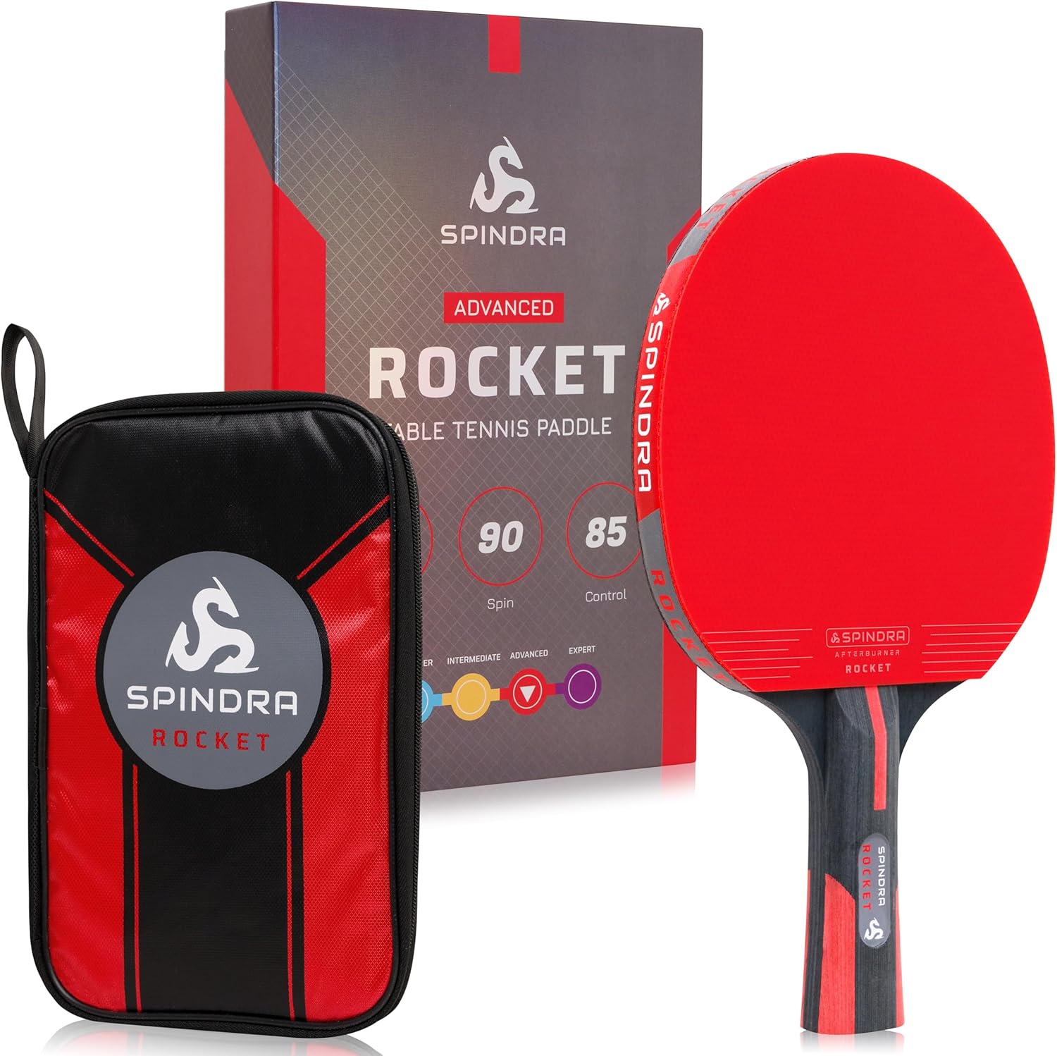 {"about_product": ["CONSTANT EVOLUTION - The premier performance series currently offers two models that are tweaked and upgraded each year. These paddles focus on giving you the comfort and precision you need to win each game in your desired playstyle or skill level.", "ELITE SPIN - Our expert to professional level Spindra Ghost has been designed to balance max spin and balanced speed & control to outplay your opponents. With HSS Technology and a carbon-layered blade, you will be equipped with the overall best paddle to fight for championships!", "MAX SPEED - Our intermediate-level Spindra Rocket has been engineered for max to speed to and high spin to crush your opponents! With Afterburner Technology in the sponge, this paddle is designed from each component to boost offensive play styles.", "UNDENIABLE RELIABILITY - Spindra was founded to end the era of cheap racquets that fall apart. Our bonding adhesive keeps your paddle ultra durable so you can perform at the top of your game day in and out. Each racket can have the rubbers replaced as well!", "ENHANCED SWEET SPOT - Give yourself the best chance at a perfect shot. Spindra paddles are each designed to balance power and control with the best expanded sweet spot coverage. Feel the difference after your first drive!", "CUSTOMER HAPPINESS PLEDGE: We are a small business based in the USA. If your table tennis racket doesn’t arrive in perfect condition, let us know, and we’ll replace it! Since our team is small, we take the time to make customer experience our #1 priority!"], "product_description": "Meet the best racket For intermediate to professional players looking to hone their skills! The Spindra Rocket uses afterburner technology and advanced materials so you can redefine your table tennis game. This pro ping pong paddle is our lineup's fastest-performance table tennis paddle! It’s engineered for maximum speed! Our ping-pong racket produces massive power while perfecting your accuracy with a reactive sweet spot. The handle has a thin concave design for comfort so you can stay focused on the match, it's sure to turn you into a table tennis paddle pro. The table tennis paddle is comfort sanded and won't make your hand smell awful after some sweaty competition! Equipped with tournament-level afterburner technology! The racket has a 9-ply carbon blade, 2mm Rocket Rubber, and a 2mm high-density premium sponge. The Rocket is rated as follows, Speed: 99, Spin: 90, Control: 85. No hassle customer service! The paddle is complete with a protective carry case and a satisfaction guarantee. Reach out to us anytime and we would be delighted to help you in any way, no hassle returns! Take your game to a new level with the best-advanced ping pong paddle, the Spindra Rocket!", "product_information": {"UPC": "703123521765", "ASIN": "B08Y95R96M", "Size": "One Size", "Brand": "Spindra", "Color": "Multicolor", "Sport": "Table Tennis", "Style": "Rocket", "Material": "Engineered Wood", "Grip Size": "3 3/4 inches", "Brand Name": "Spindra", "Model Name": "Rocket: Heavy Offense Ghost: Elite All-Around", "Item Weight": "185 Grams", "Part Number": "Alpha", "Skill Level": "Intermediate / Advanced", "Manufacturer": "Spindra Table Tennis", "Frame Material": "Wood", "Package Weight": "0.43 Kilograms", "Shaft Material": "Carbon Fiber", "Suggested Users": "unisex-adult", "Best Sellers Rank": "#61,943 in Sports & Outdoors (See Top 100 in Sports & Outdoors) #44 in Table Tennis Racquets", "Included Components": "Afterburner Technology", "Date First Available": "May 1, 2021", "Warranty Description": "Full Coverage - Please reach out if you have any issues or questions. We will do everything we can to improve your experience!", "Item Dimensions LxWxH": "6 x 0.75 x 10.25 inches", "Age Range (Description)": "Adult", "Sport Racket String Installation": "Unstrung", "Item Package Dimensions L x W x H": "11.46 x 7.36 x 1.73 inches"}, "product_details": {"Size": "One Size", "Brand": "Spindra", "Sport": "Table Tennis", "Material": "Engineered Wood", "Grip Size": "3 3/4 inches", "Item Weight": "185 Grams", "Skill Level": "Intermediate / Advanced", "Frame Material": "Wood", "Shaft Material": "Carbon Fiber", "Age Range (Description)": "Adult"}}