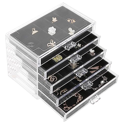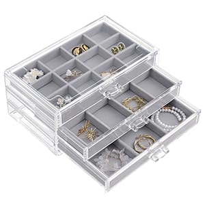 {"about_product": ["[See-through Design] With the transparent shell, you can store your everyday earrings all in a place for easily view and access, no search for matching pair and smooth start a new today", "[Spacious & Compact] This earring jewelry box has 15 small slots in each first 3 levels, 6 medium compartments in fourth drawer and 2 larger area in the last tier which great to holding small earring studs or large earring hoops", "[Customize & Stackable] Each partition and drawer are easy to adjust, you can customize and adapt to your daily needs. 4 rubber anti-skid pads on the shell bottom that can be stacked in the 4 small grooves on the top, you can stack 2 boxes or more", "[Sturdy & Long-lasting] 0.17 inch tough acrylic in the outside, including shell and drawers. Soft velvet-like fabric wrapped MDF board in the internal tray. Drawers slide open smoothly and handles are easy to grip", "[Sleek & Stylish] Unique transparent design creates a visually attractive display that coordinates with any style or existing decoration, ideal present for any earring-love."], "product_description": null, "product_information": {"ASIN": "B091DZQLHV", "Size": "5 Drawers", "Brand": "misaya", "Color": "Cream", "Shape": "Rectangular", "Style": "Modern", "Usage": "Earring Organizer, Gift", "Finish": "Polished", "Material": "Acrylic", "Finish Type": "Polished", "Item Weight": "4.24 pounds", "Mounting Type": "Freestanding", "Warranty Type": "No Warranty", "Inner Material": "Engineered Wood", "Number of Items": "1", "Special Feature": "Durable,Jewelry Organizer,See-through", "Target Audience": "Mother", "Number Of Pieces": "1", "Special Features": "Durable,Jewelry Organizer,See-through", "Best Sellers Rank": "#14,782 in Clothing, Shoes & Jewelry (See Top 100 in Clothing, Shoes & Jewelry) #83 in Jewelry Boxes", "Number of Drawers": "5", "Product Dimensions": "6\"D x 9.2\"W x 6.7\"H", "Batteries Included?": "No", "Batteries Required?": "No", "Date First Available": "March 31, 2021", "Jewelry Storage Type": "Jewelry Box", "Item Package Quantity": "1", "Number of Compartments": "53", "Recommended Uses For Product": "Dressing Room"}, "product_details": {"Brand": "misaya", "Color": "Cream", "Shape": "Rectangular", "Style": "Modern", "Material": "Acrylic", "Finish Type": "Polished", "Special Feature": "Durable,Jewelry Organizer,See-through", "Target Audience": "Mother", "Product Dimensions": "6"D x 9.2"W x 6.7"H", "Recommended Uses For Product": "Dressing Room"}}
