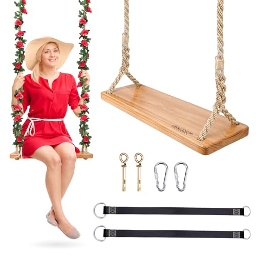 {"about_product": ["【HIGH QUALITY SWING】Swing Seat are made of 100% elm wood, natural, strong and durable. The surface of the swing is polished with lacquer to bring comfortable feel without burrs, waterproof and smooth. The rounded corner design of the wooden swing seat replaces the traditional square corner to prevent bruising and make it safer. High-quality materials allow the tree swing to withstand long stretches of outdoor sun, wind and even snow while maintaining its luster.", "【CATER FOR ALL AGES】Different from the 16 inch-20 inch children's swing on the market. Our adult swing seat size is 24 inch x 8 inch, thickness is 1.2 inch. Sturdy hemp rope can stand up to 500lbs, and load a variety of weights for adults and kids(We even have room for two kids on the swing). So whether you are a man or a woman, an adult, a kid or an old man, our tree swing can meet every need.", "【POWERFUL SWING SET】 The hemp rope length is adjustable from 4.86FT- 8.9FT. We also provide two additional 40 inch straps for more suspension possibilities. So you can always adjust the length of the swing to suit the occasion, whenever and wherever you are. You don't need to purchase additional extension straps. We have prepared everything you need. Not only as fun toys, our swings can also be used as elaborate decorations.", "【INDOOR & OUTDOOR】Swings are simple to assemble and our home page covers instructions. We provided two large expansion screws(easily be hung on the beam) for indoor use. With our connecting straps, you can hang the swing on a sturdy tree branch or a frame inside your garage. Whether the backyard, porch, patio, garden, park or home can be your children's playground. It is time to create some good childhood memories for your child.", "【24/7 CUSTOMER SUPPORT】Our original intention is to make the tree swing bring joy to the kids to have a happy childhood. Let the adults recall the beautiful childhood too and make the family more harmonious. So please don't hesitate to contact us if you have any problems with our swings. We will try our best to offer you satisfactory and friendly service. Our tree swings just want to bring fun to life."], "product_description": null, "product_information": {"ASIN": "B093C1GD5P", "Brand": "Premkid", "Color": "Classic (Hemp Rope)", "Seat Depth": "1.2 inches", "Finish Type": "Lacquered", "Item Weight": "9 pounds", "Manufacturer": "Premkid", "Frame Material": "Elm wood", "Assembly Required": "Yes", "Best Sellers Rank": "#47,567 in Toys & Games (See Top 100 in Toys & Games) #34 in Play Set Swings", "Item model number": "24 × 8 × 1.2 inches(All ages)", "Product Dimensions": "8\"D x 24\"W x 1.2\"H", "Date First Available": "April 23, 2021"}, "product_details": {"Brand": "Premkid", "Color": "Classic (Hemp Rope)", "Material": "Elm Wood", "Item Weight": "9 Pounds", "Product Dimensions": "8"D x 24"W x 1.2"H"}}