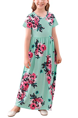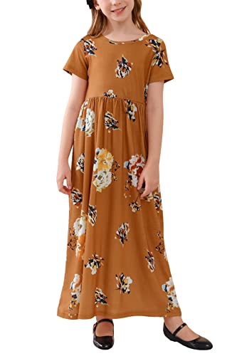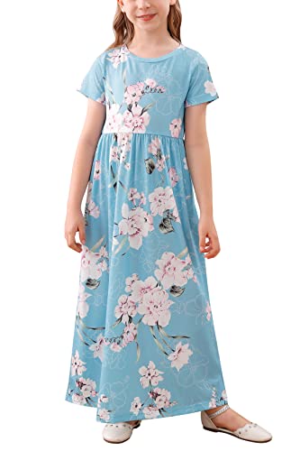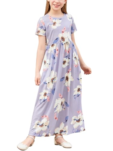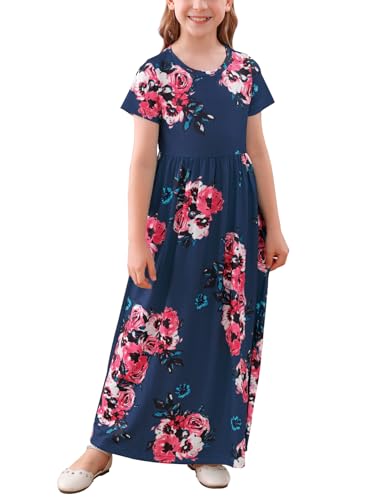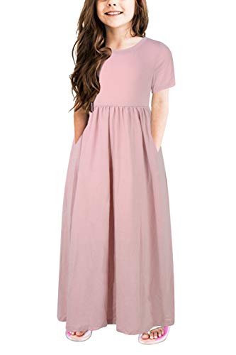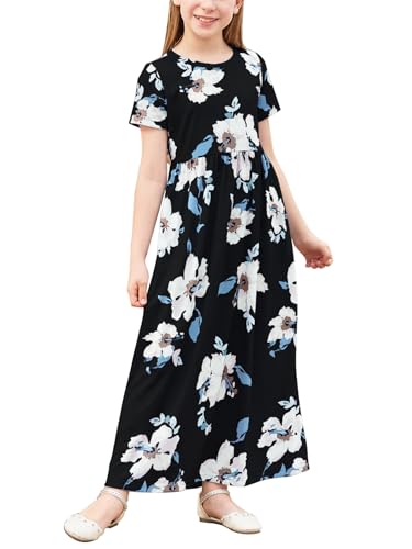 {"about_product": ["Material and Fabric: 100 Percent Polyester, elastic and comfortable fabric without pilling. Well made as far as fabric and stitching.", "Styles and Features: Casual Loose Style, Short Sleeve Dress, Round Neck, Elastic and Pleated at Waist, Two Side Pockets, Floor Length, No lined. The material is soft, stretchy and easy to wear.", "Suitable Occasion: The best choice for Party, Banquet, Casual, Outdoor, Beach, Picnic, School, Holiday, Daily Wear, etc. Available in age: 4-12 Years Children.", "Washing and Maintenance: Hand wash or low temperature for machine wash is recommended, can use dryer.", "Height Size Attention: 43in/110cm (4-5 Years), 47in/120cm (6-7 Years) , 51in/130cm (7-8 Years), 55in/140cm (9-10 Years), 59in/150cm (11-12 Years), 63in/160cm (12-13 Years)."], "product_description": null, "product_information": {"ASIN": "B0B55TRPGX", "Department": "girls", "Customer Reviews": "4.7 4.7 out of 5 stars \n\n (9,393)", "Best Sellers Rank": "#8,975 in Clothing, Shoes & Jewelry (See Top 100 in Clothing, Shoes & Jewelry) #6 in Girls' Casual Dresses", "Package Dimensions": "12.6 x 9.45 x 0.31 inches; 8.82 ounces", "Date First Available": "November 29, 2021"}, "product_details": {"Origin": "Imported", "Fabric type": "100% Polyester", "Closure type": "Pull On", "Care instructions": "Machine Wash, Hand Wash Only"}}