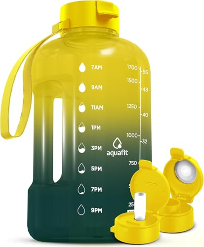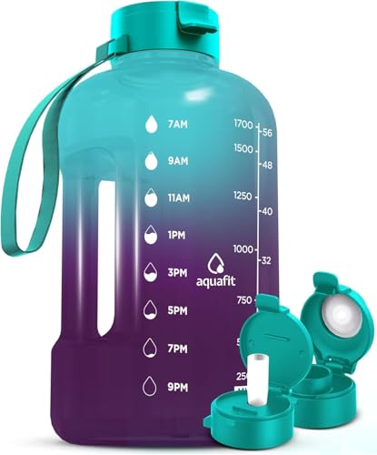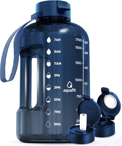 {"about_product": ["Track how much you drink - Our half gallon water bottles come with clear time markers on the side so you can see your daily water intake and stay on track to meet your health and fitness goals.", "Large 1/2 gallon, 64 oz water bottle - Our water bottles with times to drink are durable, lightweight and portable. Forget about refills: this motivational water bottle is perfect for an on-the-go lifestyle!", "2 different lids included - This large water bottle includes 2 interchangeable 100% leak-proof lids, one with a silicone straw and one without. Switch style on your water jug according to your drinking preference, activity and more!", "Bonus accessories - Our clear water bottles also include a useful handling strap and two lids. The perfect sports water bottle to take to the gym!", "BPA-free & user friendly design - Our 64 oz reusable water bottle comes with a wide mouth, a big handle for easy grabbing, and is made of 100% BPA-free plastic."], "product_description": null, "product_information": {"ASIN": "B094X6N4PG", "Size": "64 Ounces", "Brand": "AQUAFIT", "Color": "Gray", "Shape": "Oval", "Style": "64 oz - 2 Lids", "Theme": "Sport", "Finish": "Glossy", "Pattern": "Solid", "Capacity": "4 Pounds", "Material": "Plastic", "Model Name": "(64 oz) Half Gallon Water Bottle with Straw", "Unit Count": "1.0 Count", "Bottle Type": "Water Bottle", "Finish Type": "Glossy", "Item Weight": "14.1 ounces", "Part Number": "AQUAFIT 2", "Reusability": "Reusable", "Manufacturer": "AQUAFIT", "Number of Items": "1", "Number of Packs": "1", "Special Feature": "Carrying Loop, Flip Top, Integrated Spout, Leak Proof, Straw", "Special Features": "Carrying Loop, Flip Top, Integrated Spout, Leak Proof, Straw", "Best Sellers Rank": "#1,212 in Sports & Outdoors (See Top 100 in Sports & Outdoors) #60 in Water Bottles", "Item model number": "1 Gallon Water Bottle", "Material Type Free": "Bisphenol A (BPA) Free", "Product Dimensions": "5.5\"W x 9.9\"H", "Batteries Included?": "No", "Batteries Required?": "No", "Included Components": "Carry Strap, Straw & Chug Lid", "Package Information": "Water Bottle", "Date First Available": "May 13, 2021", "Item Package Quantity": "1", "Product Care Instructions": "Fridge Safe, Hand Wash Only", "Specific Uses For Product": "Cold Drinks", "Recommended Uses For Product": "Gym, Cycling, Sports, Camping, Yoga, Water Sports, Swimming, Hiking, Walking, Running, Indoor, Work, Commute"}, "product_details": {"Brand": "AQUAFIT", "Color": "Gray", "Capacity": "4 Pounds", "Material": "Plastic", "Bottle Type": "Water Bottle"}}