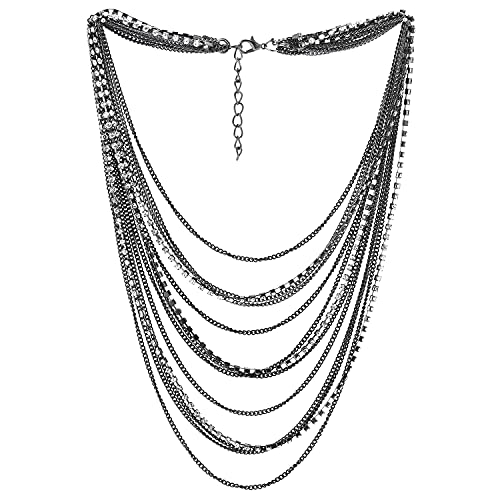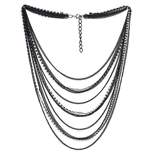 {"about_product": ["18K Gold-Plated Color Waterfall Multi-Strand Chains Statement Collar Necklace with Rhinestones Chains, Dress", "1)Sizes: Details shown on listing picture", "2)Length: 38CM(14.96\")", "3)Total Weight: 44.1g", "4)Material: Alloy 18K Gold-Plated;Rhinestones", "5)Package: Jewelry Box with Brand Name COOLSTEELANDBEYOND"], "product_description": "*Metal Color: Silver & Black\n1)Sizes: Details shown on listing picture\n2)Length: 36CM(14.17\")\n3)Total Weight: 42.1g\n4)Material: Alloy, Rhinestones\n\n *Metal Color: 18K Gold-Plated & Black\n1)Sizes: Details shown on listing picture\n2)Length: 38CM(14.96\")\n3)Total Weight: 43.9g\n4)Material: Alloy 18K Gold-Plated;Rhinestones\n\n *Metal Color: Black\n1)Sizes: Details shown on listing picture\n2)Length: 38CM(14.96\")\n3)Total Weight: 44.5g\n4)Material: Alloy; Rhinestones\n\n *Metal Color: Silver\n1)Sizes: Details shown on listing picture\n2)Length: 38CM(14.96\")\n3)Total Weight: 42.4g\n4)Material: Alloy; Rhinestones\n\n *Metal Color: 18K Gold-Plated\n1)Sizes: Details shown on listing picture \n2)Length: 38CM(14.96\")\n3)Total Weight: 44.1g\n4)Material: Alloy 18K Gold-Plated; Rhinestones \n\n *Metal Color: Grey & Black\n1)Sizes: Details shown on listing picture\n2)Length: 38CM(14.96\")\n3)Total Weight: 44.5g\n4)Material: Alloy; Rhinestones\n\n *Metal Color: Silver & Black-02\n1)Sizes: Details shown on listing picture\n2)Length: 38CM(14.96\")\n3)Total Weight: 23.6g\n4)Material: Alloy; Rhinestones and Simulated crystal\n\n *Metal Color: Silver & Black-03\n1)Sizes:Details shown on listing picture\n2)Length:41CM(16.14\")\n3)Total Weight:28.8g\n4)Material:Alloy\n\n *Metal Color: 18K Gold-Plated & Black-02\n1)Sizes: Details shown on listing picture\n2)Length: 54CM(21.26\")\n3)Total Weight: 54.2g\n4)Material: Alloy\n\n *Metal Color: 18K Rose-Gold-Plated\n1)Sizes: Details shown on listing picture\n2)Length: 38CM(14.96\")\n3)Total Weight: 44.3g\n4)Material: Alloy 18K Rose-Gold-Plated; Rhinestones \n5)Package: Jewelry Box with Brand Name COOLSTEELANDBEYOND", "product_information": {"ASIN": "B085VT7GHN", "Department": "womens", "Manufacturer": "COOLSTEELANDBEYOND", "Customer Reviews": "3.7 3.7 out of 5 stars \n\n (639)", "Product Warranty": "For warranty information about this product, please click here", "Best Sellers Rank": "#148,741 in Clothing, Shoes & Jewelry (See Top 100 in Clothing, Shoes & Jewelry) #19 in Women's Collar Necklaces", "Date First Available": "March 13, 2020"}, "product_details": {"Gem type": "No Gemstone", "Material": "Alloy; Rhinestones", "Chain type": "Strand", "Clasp type": "Lobster", "Metal type": "Alloy", "Item display length": "38 centimeters"}}