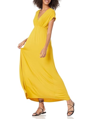{"about_product": ["FIT & FLARE: Fitted through chest and waist, flared to hem.", "RAYON STRETCH JERSEY: This soft and drapey lightweight jersey has a smooth, polished finish. Also offered in a sustainably sourced option 95% Rayon (Lenzing Ecovero Viscose), 5% Elastane.", "WAISTED MAXI DRESS: This versatile and figure-flattering flowy maxi dress seamlessly transitions from day to night. Pair with your favorite sneakers for a day exploring the city or dress up for an evening out with Amazon Essentials Women's Espadrilles,", "DETAILS: Features an elastic empire waist for all-day comfort while providing a flattering fit. V-neck overlap neckline, dolman short sleeves, and maxi length.", "LENGTH: 35\" from side neck on US size S."], "product_description": "We listen to customer feedback and fine-tune every detail to ensure our clothes are more comfortable, higher quality, and longer lasting—at affordable prices for the whole family.", "product_information": {"ASIN": "B07JMVJYSW", "Department": "womens", "Manufacturer": "Amazon Essentials", "Customer Reviews": "4.3 4.3 out of 5 stars \n\n (11,428)", "Best Sellers Rank": "#1,682 in Our Brands (See Top 100 in Our Brands) #165 in Women's Casual Dresses", "Item model number": "AE1933404", "Package Dimensions": "1 x 1 x 1 inches; 8 ounces", "Date First Available": "May 9, 2019"}, "product_details": {"Origin": "Imported", "Fabric type": "95% Viscose, 5% Elastane", "Closure type": "Pull On", "Care instructions": "Machine Wash Cold, Line Dry"}}
