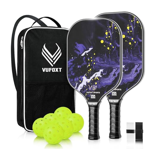 {"about_product": ["【USAPA Standard for Victory】Graphite pickleball paddles meet all USAPA testing requirements and are approved by events for tournament play;Offering a perfect combination of power and control;The quality construction combined with the teardrop shape adds extra crispness to your shots so you can improve your game and squash your opponent;VUFOXT honored to contribute our support to your road to championship.", "【Wide Body and Lightweight】The wide racket area provides more sweet spots for perfect ball impact. Whether you are a beginner or pro, this 7.8 ounce (average) lightweight paddle is highly controllable and comfortable to be played with. You can have excessive power to hit the ball hard and make different strokes including dink, volley etc.", "【Polymer Honeycomb Composite Core】The USAPA standard VUFOXT fiberglass pickleball paddles set are constructed by polymer honeycomb, which provides pickleball racket with redefined strength, accuracy and durability. Provides more precise ball control and swing strength. The stability of the honeycomb structure also extends the life of the pickle ball paddle.", "【Sweat-absorbent Anti-slip Handle】Our pickleball paddles’s grip is sweat absorbent, and cushioned. Hand-stitched handles, soft, anti-slip, grip provides you with a long game without fatigue. Pickleball racket with graphite surface is lighter in weight and stronger than other rackets such as Wooden, best for junior, top levels of game.", "【Great Started Pickleballs Kit】The pickleball paddle set have 2 pickleball paddles and a durable carrybag, it can protect the pickleball paddle well when you are not using it and and carry him out for sports. This pickleball set also include 4 pickleballs that can meet your needs."], "product_description": "", "product_information": {"UPC": "789007374283 794471772923", "ASIN": "B098J4R2CS", "Size": "2pcs", "Brand": "VUFOXT", "Color": "Blue 2Players", "Sport": "Pickleball", "Style": "2 Players", "Material": "Carbon Fiber", "Grip Size": "4 1/8 inches", "Brand Name": "VUFOXT", "Model Name": "VU-PP1", "Item Weight": "11.2 Ounces", "Part Number": "pickleball paddles of 2", "Skill Level": "All", "Manufacturer": "VUFOXT", "String Color": "blue", "Frame Material": "Carbon Fiber", "Package Weight": "0.75 Kilograms", "Shaft Material": "Graphite", "Number of Items": "2", "Suggested Users": "mens", "Best Sellers Rank": "#3,414 in Sports & Outdoors (See Top 100 in Sports & Outdoors) #24 in Pickle-Ball Equipment", "Product Dimensions": "10.63\"L x 7.87\"W", "Included Components": "1 * carry bag, 2 * indoor pickle balls & 2* outdoor pickle balls, 2 * pickleball paddles", "Date First Available": "July 2, 2021", "Warranty Description": "1", "Item Dimensions LxWxH": "10.63 x 7.87 x 0.04 inches", "Age Range (Description)": "3", "Sport Racket String Installation": "Unstrung", "Item Package Dimensions L x W x H": "16.81 x 10.22 x 3.14 inches"}, "product_details": {"Size": "2pcs", "Brand": "VUFOXT", "Sport": "Pickleball", "Material": "Carbon Fiber", "Grip Size": "4 1/8 inches", "Item Weight": "11.2 Ounces", "Skill Level": "All", "Frame Material": "Carbon Fiber", "Shaft Material": "Graphite", "Age Range (Description)": "3"}}