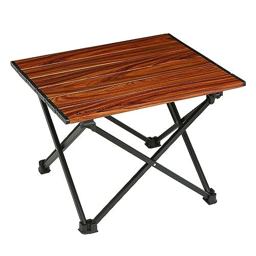 {"about_product": ["Bigger but still portable: Our folding camp table size L only 3.1lbs, unfolding size 20x16x16 in, package size 24x6.5x3 in, bigger than our classic size but still portable, max load capacity: 60 lbs. You can easily take it to anywhere with carry bag, especially suitable for outdoor activities such as camping, hiking, backpacking, picnic, fishing, beach, as well as indoor use", "STURDY & DURABLE: This camping table is built with an aerospace-grade aluminum alloy, waterproof, no rust, corrosion resistant, easy clean, rugged enough for all your outdoor needs. With proper care is sure to give you years of service", "NEW UPGRADE NYLON HINGED: Our new upgraded high quality folding table tops feature a unique Nylon hinged connection, compared to other folding table tops with a bungee cord or metal connection, more durable, more stable and Good toughness and not easy to rust", "EASY TO INSTALL: No tools needed! Open base frame, attach the table top and you are ready to go! You can even assemble this using only one hand!", "SMALL SIZE BUT STRONG: Sturdy structure, with a strong joint and connector, Its unique hinge design enables easy and robust connection to the table top. Unique anti-slip leg caps design, super stable and safe to use"], "product_description": null, "product_information": {"ASIN": "B09FJTV473", "Base": "Aluminum", "Size": "Medium - 22\"", "Color": "Wood Grain", "Shape": "Rectangular", "Tilting": "No", "Base Type": "Cross", "Top Color": "Black, Green, Wood Grain", "Base Color": "Black or Green or Wood Grain", "Brand Name": "ROCK CLOUD", "Model Name": "Folding Table", "Style Name": "Modern", "Is Foldable": "Yes", "Item Height": "11.5 inches", "Item Weight": "2.6 Pounds", "Finish Types": "wooden grain", "Manufacturer": "ROCK CLOUD", "Table Design": "Coffee Table", "Material Type": "Aluminum", "Bench Quantity": "1", "Extended Length": "20 Inches", "Handle Material": "Metal", "Number of Doors": "1", "Number of Items": "1", "Number of Racks": "1", "Frame Joint Type": "Hinge", "Furniture Finish": "Aluminum", "Is Customizable?": "No", "Seating Capacity": "2", "Best Sellers Rank": "#56,076 in Sports & Outdoors (See Top 100 in Sports & Outdoors) #68 in Camping Tables", "Number Of Shelves": "1", "Top Material Type": "Aluminum", "Is Stain Resistant": "Yes", "Frame Material Type": "Metal", "Indoor Outdoor Usage": "Indoor, Outdoor", "Is the item resizable?": "No", "Furniture Base Movement": "Glide", "Collapsed Length Minimum": "6.5 Inches", "Item Dimensions D x W x H": "16\"D x 22\"W x 16\"H", "Product Care Instructions": "Wipe with Damp Cloth", "Specific Uses For Product": "outdoor activities, indoor use", "Unextended Seating Capacity": "2", "Recommended Uses For Product": "Backpacking, Beach, Camping, Fishing, Hiking, Indoor usage, Picnic", "Maximum Weight Recommendation": "60 Pounds"}, "product_details": {"Brand": "ROCK CLOUD", "Item Weight": "2.6 Pounds", "Frame Material": "Metal", "Product Dimensions": "16"D x 22"W x 16"H", "Maximum Weight Recommendation": "60 Pounds"}}