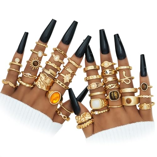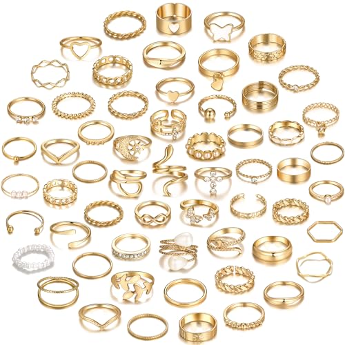 {"about_product": ["Gold Rings Set:All rings are made of high-quality alloy materials combined with electroplating process, smooth surface, bright color, comfortable fit design, suitable for most women.", "68 Pcs Knuckle Rings: You will get a ring set with a combination of various styles such as a pearl open ring, a wave ring, and a twist ring. You can experience different types of finger ring combinations every day. It will be a versatile accessory that can be used with many different styles of clothing to attend different occasions and make you look more attractive.", "Size Available: Finger rings of different designs There are many rings of different sizes suitable for multiple fingers to wear at the same time, based on the size on the size chart.", "Finger Rings: Our gold-plated ring is housed in a beautiful bag. You can give it to your mothers, friends or yourself on some important days, just to express the most sincere love to them!", "Note:This product is designed for US Age of 15 years and above."], "product_description": null, "product_information": {"ASIN": "B09HBWRNGK", "Department": "womens", "Customer Reviews": "4.1 4.1 out of 5 stars \n\n (3,977)", "Product Warranty": "For warranty information about this product, please click here", "Best Sellers Rank": "#6,635 in Clothing, Shoes & Jewelry (See Top 100 in Clothing, Shoes & Jewelry) #12 in Women's Stacking Rings", "Date First Available": "September 28, 2021"}, "product_details": {"Gem type": "No Gemstone", "Material": "Metal", "Metal type": "Alloy", "Item type name": "Ring"}}
