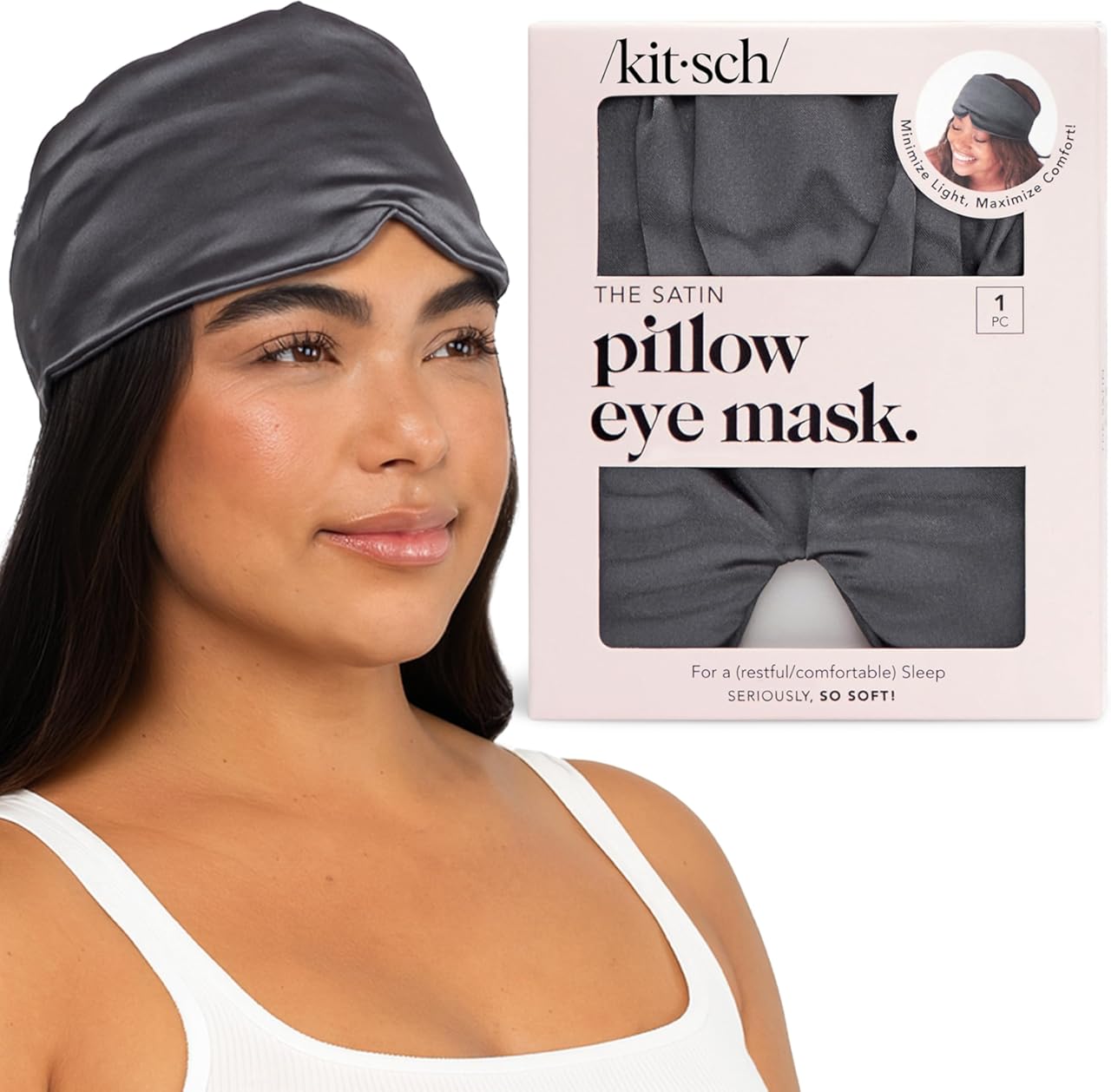 {"about_product": ["ELEVATE YOUR BEAUTY REST: Upgrade your nighttime routine with the Kitsch Charcoal Satin Eye Mask. Crafted with ultra-soft satin, this luxurious softer than Slik Sleep Mask ensures ultimate comfort while protecting your skin. It's a must-have accessory for beauty and relaxation.", "GENTLE ON ALL SKIN TYPES: This Softer than Silk Eye Mask for sleeping is ideal for travel, home, flight, train, or anywhere where light disrupts your sleep.", "PROMOTES RESTFUL SLEEP: Designed to block out light and promote deep, restful sleep, the padded softness of the Satin Eye Masks material gives you a comfortable night rest, all while looking chic.", "SOFT AND EASY TO USE. Our soft satin blindfold with the elastic strap keeps the sleeping mask in place and adjusts to fit your head for comfort. Suitable Sleep Masks for Women and Men.", "THE PERFECT GIFT FOR BEAUTY & RELAXATION: Treat your loved ones to the gift of restful sleep with the Kitsch Charcoal Satin Eye Mask. Its luxurious satin design not only promotes beauty sleep but also adds a touch of elegance to any nighttime routine and eye care. Ideal for birthdays, holidays, self-care packages, or as chic stocking stuffers, this Charcoal Black Mask is the ultimate gift for those who value comfort, style, and wellness. Give the gift of comfort and relaxation!", "PERFECT HOLIDAY GIFTS FOR WOMEN – Whether you're searching for gifts for women, white elephant gifts for adults, teen girl gifts trendy stuff, or thoughtful self care gifts for women, this sleep mask makes a versatile choice. Great as gifts for mom, valentines day gifts, or gifts for teen girls, and fits right in with fun white elephant gifts or practical stocking stuffers."], "product_description": null, "product_information": {"ASIN": "B09GYPT47K", "Manufacturer": "Kitsch", "Customer Reviews": "4.4 4.4 out of 5 stars \n\n (1,333)", "Best Sellers Rank": "#803 in Health & Household (See Top 100 in Health & Household) #5 in Sleep Masks", "Item model number": "6240", "Product Dimensions": "4.5 x 1.25 x 5.5 inches; 2.08 ounces", "Date First Available": "September 23, 2021"}, "product_details": {"Brand": "Kitsch", "Color": "Charcoal Black", "Material": "Satin", "Special Feature": "Complete Blackout", "Age Range (Description)": "Adult"}}