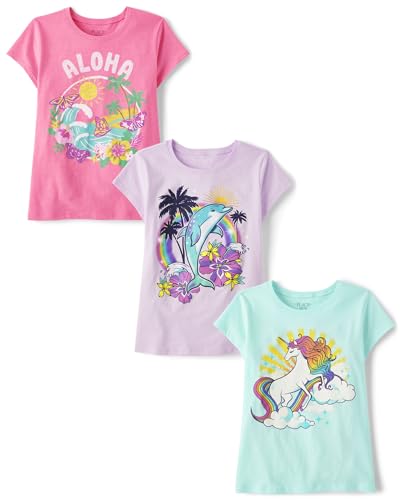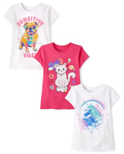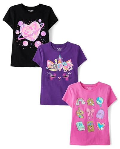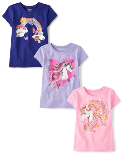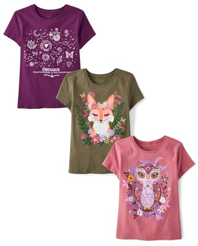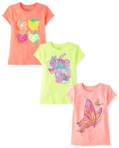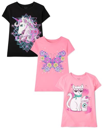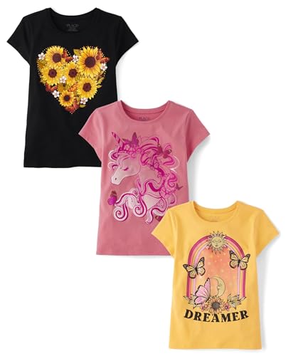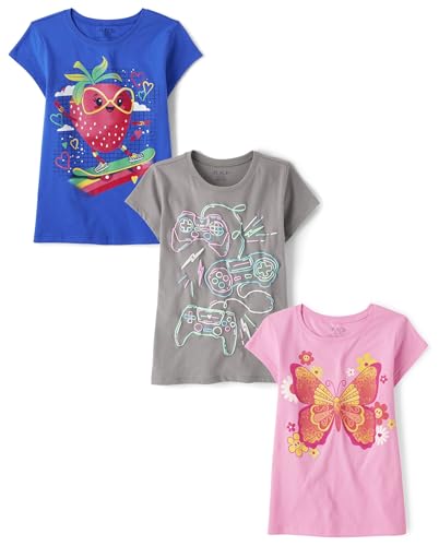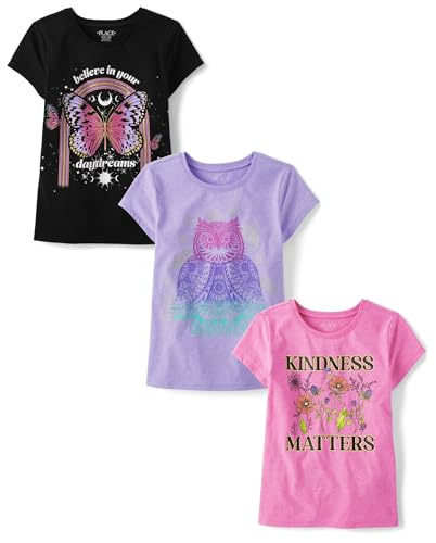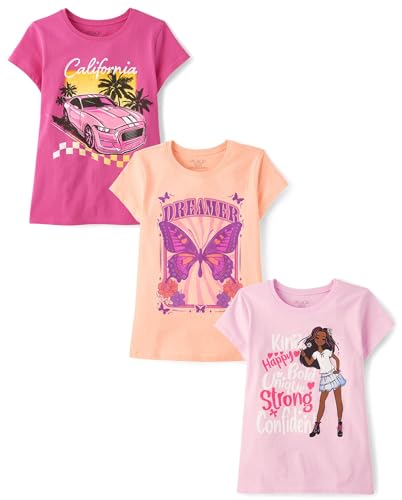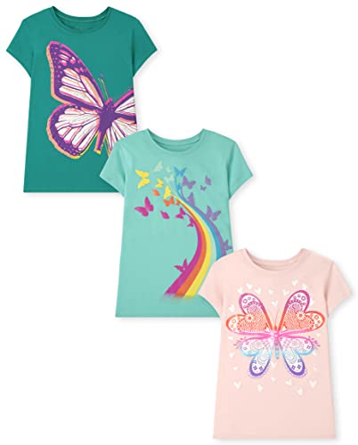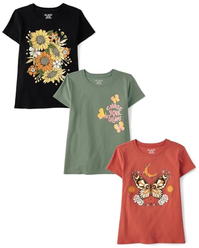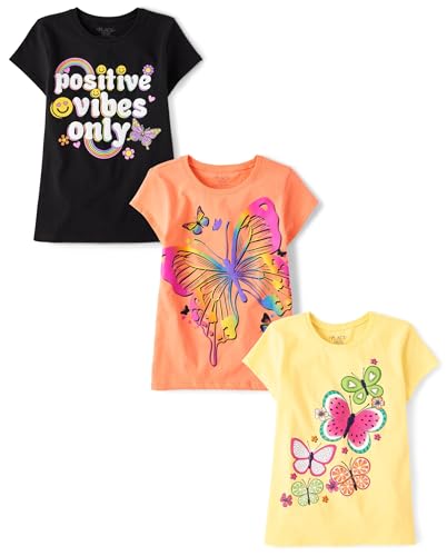 {"about_product": ["GRAPHIC TEE — A classic, comfortable fit with graphics she'll love", "FABRIC — Tahoe Blue style made of 60% cotton/40% polyester jersey; Light Siam and Tuscan Sun style made of 100% cotton jersey", "DESIGN — Features a rib-knit crew neck and short sleeves", "MULTIPACK — Pack of 3 graphic tees: 1 tee with heart butterfly graphic design at front; 1 tee with butterfly floral graphic design at front; 1 tee with floral peace sign graphic design at front", "THE CHILDREN'S PLACE — We offer a huge selection of kid's clothing! Shop us for jeans, shorts, leggings, chinos, polo shirts, dresses, uniforms, pajamas, and accessories."], "product_description": "The Children’s Place offers a huge selection of kid's clothing! Shop us for jeans, shorts, leggings, chinos, polo shirts, dresses, uniforms, pajamas, and accessories. Made with premium quality materials at a great value. Kids clothing made simple.", "product_information": {"ASIN": "B0CTY9FRGN", "Department": "girls", "Manufacturer": "The Children's Place", "Customer Reviews": "4.7 4.7 out of 5 stars \n\n (4,603)", "Best Sellers Rank": "#2,528 in Clothing, Shoes & Jewelry (See Top 100 in Clothing, Shoes & Jewelry) #3 in Girls' Tees", "Item model number": "3047338", "Date First Available": "February 4, 2024"}, "product_details": {"Origin": "Imported", "Fabric type": "60% Cotton, 40% Polyester", "Closure type": "Pull On", "Care instructions": "Machine Wash"}}