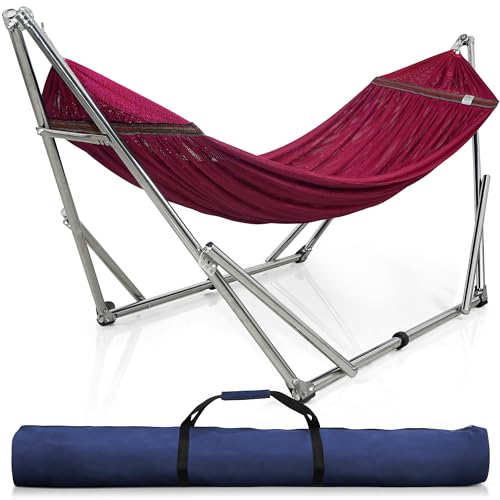{"about_product": ["? STURDY STAINLESS STEEL 650 POUNDS CAPACITY HAMMOCK STAND: Made of stainless steel for high endurance. Rubber feet stabilize and minimize any scratching, making the adjustable hammock stand the perfect resting station in your home or outdoor", "? DURABLE AND SMOOTH BALL BEARING: Make sure all rocking movements are flawless and noiseless. The free stand hammock you’d ever want for a complete soothing relaxation. Optimized stand for effortless 30 seconds setup and disassemble", "? REVOLUTIONARY COLLAPSIBLE ADJUSTABLE NOTCH DESIGN: Offers maximal compatibility to cater all heights and preferences. The versatile design of the camping hammock offers endless customizations for relaxing, or taking to your camping trips", "? 2-LAYERED POLYESTER EXPANDABLE BREATHABLE HAMMOCK NET: Easily accommodates 2 persons. Stitched-in light, flexible yet durable spreader bars prevent uncomfortable cocooning, and keep the net stable as you move", "? DURABLE HARDWARE makes a light yet versatile companion on any trips. Carry bag included to easily store and transport your Hammock Stand and Net. Quick, simple and easy to set up anywhere. Everything is in the box for an effortless assembly"], "product_description": null, "product_information": {"ASIN": "B09NCXXG2D", "Brand": "Tranquillo", "Color": "Black", "Folded Size": "51\" x 8\" Inches", "Item Weight": "25.4 pounds", "Manufacturer": "HMD INTERNATIONAL TRADING JOINT STOCK COMPANY (Tranquillo)", "Best Sellers Rank": "#211,954 in Patio, Lawn & Garden (See Top 100 in Patio, Lawn & Garden) #122 in Hammock Stands", "Item model number": "AY9M", "Product Dimensions": "121\"L x 39\"W", "Global Trade Identification Number": "08936196800501"}, "product_details": {"Brand": "Tranquillo", "Color": "Black", "Material": "Stainless Steel", "Product Dimensions": "121"L x 39"W", "Maximum Weight Recommendation": "650 Pounds"}}
