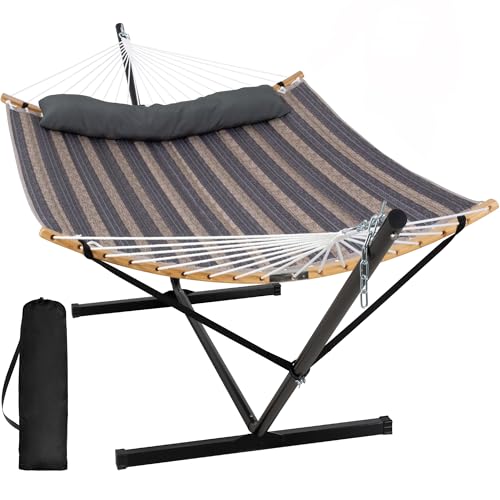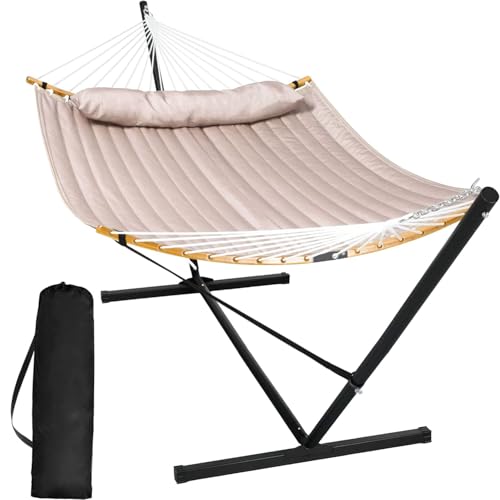 {"about_product": ["Comfortable and Non-fading: Two-layer 100% quilted polyester fabric with poly fiber filling, cozier and best for camping and the outdoors. Compared with other quilted hammocks, it will not fade after long-term use. A polyethylene-stuffed head pillow offers superior comfort. You can even set your preferred height by hooking the suitable chain section to the hooks on the stand", "Curved Spreader Bar & Balance Ropes: 55 inch spreader bars with marine varnish to seal are stylish and weather resistant. And the bar could be knocked down for easy storage and carriage. Comes with balance ropes, SUNCREAT hammock combo cares more about your safety. Don’t need to worry about flipping over any more", "Handcrafted Ropes: The heavy duty polyester ropes are hand-woven with comfortable, long-lasting threads woven by the hammock artisans. The 18 ropes are collected together and woven into a triangle pattern which is pleasing to eyes. O-shaped steel ring attaches the ropes and the chain", "Extra Large Size: Larger hammock bed size of 74.8\" L * 55.1\" W. Hammock pillow size: 43.3” (L) x 11.0” (W). This heavy duty hammock is made for sharing. Designed to support up to 450 pounds, you may enjoy a relaxing swing on the hammock with family, friends and significant others", "Freestanding Hammock with Portable Stand: No damage to trees. Created to be stable and long-lasting, the 12 ft stand is made from powder-coated heavy gauge steel. It can be easily assembled in minutes without any tools, and it could be disassembled easily. Feel free to contact us if you have any questions during use within one year of purchase. We are always here to help"], "product_description": null, "product_information": {"UPC": "728990390863", "ASIN": "B09QFY91CP", "Brand": "SUNCREAT", "Color": "Dark Gray", "Folded Size": "30.70\" x 9.84\" x 6.29\"", "Item Weight": "36 pounds", "Manufacturer": "SUNCREAT", "Best Sellers Rank": "#3,329 in Patio, Lawn & Garden (See Top 100 in Patio, Lawn & Garden) #7 in Hammocks", "Product Dimensions": "147.6\"L x 55.1\"W", "Date First Available": "December 9, 2020"}, "product_details": {"Brand": "SUNCREAT", "Color": "Dark Gray", "Material": "Bamboo Spreader Bar, Polyester Fabric, Polyester Ropes, Steel Chains, Steel Stand", "Product Dimensions": "147.6"L x 55.1"W", "Maximum Weight Recommendation": "450 Pounds"}}