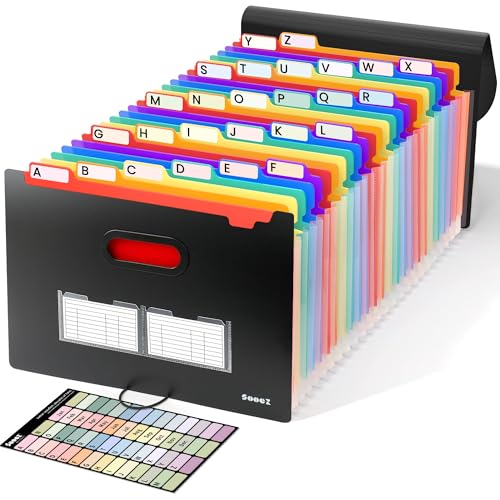 {"about_product": ["All-In-One Monthly Organizer: Keep all your important documents in one place with Sooez Accordion File Organizer. 13 pockets design works great for Monthly organizing and protecting all your important paperwork, bills, taxes, receipts, invoices and more. Perfect for letter size.", "Expandable Capacity: The accordion file folder can be stretched up to 12 inches. 13 pockets allow you to store more than 2000 sheets. No matter how many documents you need to store, this folder can accommodate your needs as it can be easily expanded according to your requirements.", "Efficient Organization & Easy Lookup: To enhance your file organization, we provide blank labels along with this folder. You can personalize them to suit your requirements, such as labeling sections by month for effortless file retrieval.", "Stable & Portable: Stand on its own on the desk and not easy to tip over. Designed with portability in mind, allowing you to effortlessly move it between your desk, cabinet, and any other preferred locations.", "Maximum Protection and Durability: Well made, made from durable wipe-clean polypropylene. Waterproof & sturdy. Tear-resistant plastic provides durable structure. Acid-free, PVC-free, and archival quality for safe storage. Adjustable snap closure helps keep contents secure. Use 2 additional front pockets for business cards, project title cards or notes."], "product_description": null, "product_information": {"ASIN": "B09S9JD5G5", "Brand": "Sooez", "Color": "Black", "Tab Cut": "1/5 Cut", "Sheet Size": "Letter, A4", "Item Weight": "13.4 ounces", "Manufacturer": "Sooez", "Tab Position": "Top", "Material Type": "Polypropylene (PP)", "Number of Items": "1", "Best Sellers Rank": "#1,137 in Office Products (See Top 100 in Office Products) #2 in Expanding Files & Wallets", "Fastener Capacity": "2000 sheets", "Item model number": "SZA0116-0001A", "Product Dimensions": "12 x 13 x 9.25 inches", "Date First Available": "February 11, 2022", "Manufacturer Part Number": "SZA0116-0001A"}, "product_details": {"Brand": "Sooez", "Color": "Black", "Style": "13 Pockets", "Material": "Polypropylene (PP)", "Sheet Size": "Letter, A4"}}