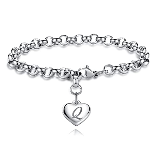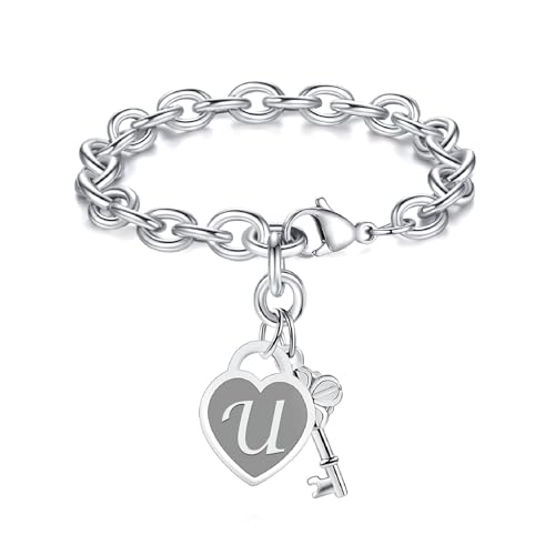 {"about_product": ["【 Bracelets for Teen Girls 】 Initial bracelet is trendy yet meaningful and would make a timeless piece of jewelry. Choose charm bracelets with initials to signify someone or something that means a lot to you, and keep all your memorial and love close to you for always. Perfect as birthday gifts for girls, friendship gifts for women friends, Stocking stuffers for teens and women, Christmas gifts for teen girls and women. And it also a great reminder gift to let her know you are always there for her.", "【 Charm Bracelet Premium Quality 】 These cute bracelets for girls are made from 316L stainless steel for long life, hypoallergenic, anti-tarnish and never turn skin green. Durable and strong but also LIGHTWEIGHT. Each heart bracelet has been polished many times both outside and inside to avoid scratching your wrist. Classical, stylish and comfortable for daily wear. You can't go wrong with this silver charm bracelets! Perfect as stocking stuffers for girls and kids.", "【 Initial Bracelet Adjustable Size 】 With 0.7\" x 0.7\" initial heart charm, 8 inches ADJUSTABLE chain with lobster clasp, this key charm bracelet can hook on any link to fit your wrist and suitable for teen girls and adult women. Get this exquisite initial jewelry to represent your name, favorite initials, parent's names, friend's initials, children's initials, special phrase, or anything else meaningful! Amazing gifts for girls , cute gifts for your daughter, granddaughter, niece.", "【 Gifts for Teenage Girls Women 】 Comes with a fancy gift box and a cute wish card, this charm bracelets for girls are beautifully packaged and ready for giving. Great as Birthday gifts for girls, Stocking stuffers for women and teen girls, first communion gifts for girls, confirmation gifts for teenage girl, graduation gifts for her, Easter gifts for girls and kids, Back to school gifts, Graduation gifts for her, mothers day gifts for mom grandma, Christmas gifts for girls, Flower girl gifts.", "【 After-sales Service 】 If you have any questions about our charm bracelet, please don't hesitate to contact us and we will address your issues ASAP."], "product_description": null, "product_information": {"ASIN": "B07Z7PVQKZ", "Department": "girls", "Customer Reviews": "4.6 4.6 out of 5 stars \n\n (3,306)", "Best Sellers Rank": "#5,627 in Clothing, Shoes & Jewelry (See Top 100 in Clothing, Shoes & Jewelry) #4 in Girls' Charm Bracelets", "Date First Available": "October 17, 2019"}, "product_details": {"Gem type": "No gemstone", "Material": "Stainless Steel", "Chain type": "Link Chain", "Clasp type": "Lobster Claw", "Metal type": "Stainless Steel", "Item display length": "8 inches"}}