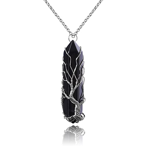{"about_product": ["【BLACK HEALING CRYSTAL】Black Agate means Self control, decision making, intuition, protection. It is widely believed that black onyx can change your habits are erratic, either when used with faith. It is regarding as one powerful protection stone as it absorbs negative energy of people to release mental stress and promote emotional well-being.", "【TREE LIFE NECKLACE】The crystal pendant is wrapped by dainty tree of life, which symbolizes positive energy, growth, wisdom,knowledge and strength, rebirth, a bright future, longevity, good health, and a fresh start on life. It also symbolizes family through its intricate network of branches. The crystal Pointed pendant is made of natural energy stone, so each piece is natural and unique. There could be some slight differences in the color tone, texture or size of the pictures and the actual item. Please refer to the actual product received.", "【HYPOALLERGENIC】The necklace chain is Hypoallergenic, Lead-Free, Nickel-Free and confortable to sensitive skin.To maintain the quality and shininess, please store in jewelry box and dry clean place.", "【IDEAL GIFT】 Healing crystal necklace is an ideal gift choice during Christmas Day, Anniversary Day, Valentine's Day, Mother's Day, Father's Day and Birthday to your loved one. It suits women, men, and goes well with casual wear or formal outfits to offer the perfect day-to-night accessory.", "【PACKAGE & SERVICE】 Healing Crystal Pendant Necklaces are packed in exquisite velvet bags and gift box. If you have any questions about the crystal necklaces you bought, Please contact us, we will provide you with professional after-sales service and solutions within 24 hours."], "product_description": "Healing Crystal Necklace Tree of Life Wire Wrapped Teardrop Natural Stone Pendant Necklace Reiki Spiritual Quartz Gemstone Jewelry for Women Men \n Specification:Necklace Chain Size: 19.7 inch (adjustable).Crystal Point Pendant Size: 1.89*0.98 inch.Weight: about 0.25oz.Material: natural crystal stone & Gold Wire Alloy. \n Protect your crystal necklace:1. Please take it off when take a bath, wash your hair, swim in the pool or sea, soak in the hot springs, do housework, the chemicals in shampoo, the salt water in sea, the chlorine water in the pool, the detergent used in household chores will have a bad effect on the crystal stone necklace.2. The crystal necklaces that is not worn normally should be stored in a special storage box or jewelry sealed bag for storage and storage, and should not be placed in a wet or exposed place for a long time. \n If you have any questions about the crystal necklace you bought. You can ask us questions, \"VIBILIA\" will provide you with professional answers within 24 hours.", "product_information": {"ASIN": "B09TD2F6VP", "Manufacturer": "VIBILIA", "Customer Reviews": "4.2 4.2 out of 5 stars \n\n (1,800)", "Best Sellers Rank": "#8,808 in Health & Household (See Top 100 in Health & Household) #10 in Healing Crystals", "Package Dimensions": "5.51 x 3.94 x 0.65 inches; 0.71 ounces", "Date First Available": "February 25, 2022"}, "product_details": {"Gem type": "Onyx,quartz,agate", "Material": "Copper alloy", "Chain type": "Box", "Metal type": "Copper", "Item type name": "Necklace"}}