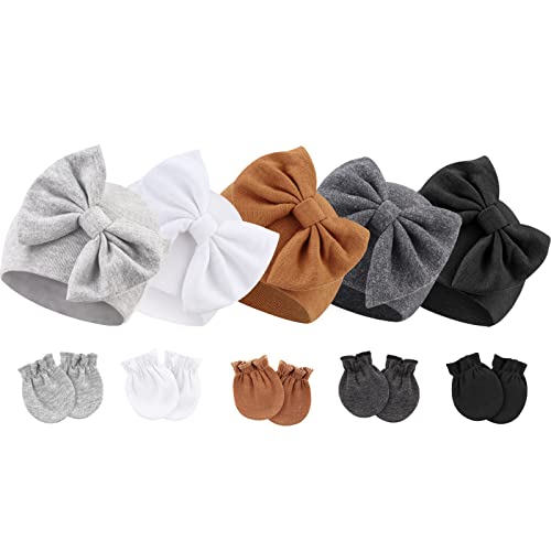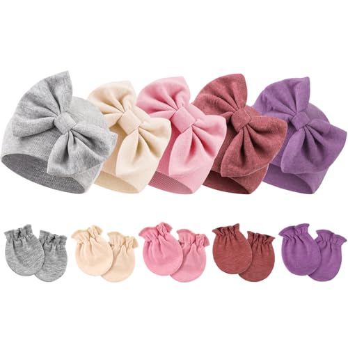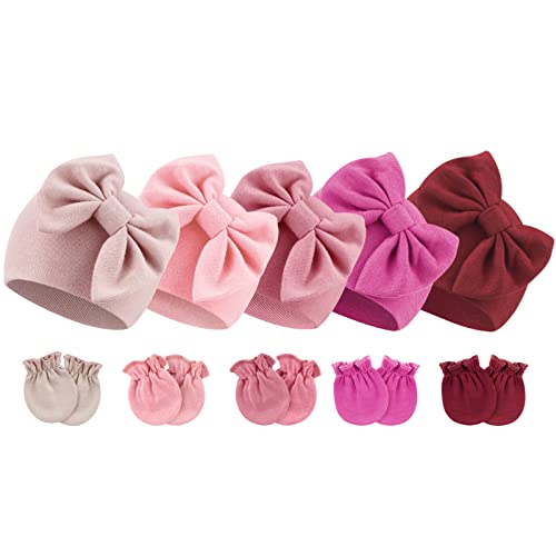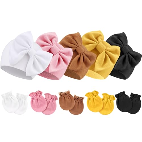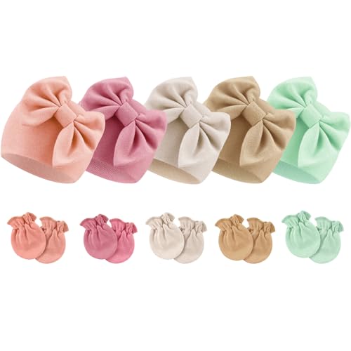 {"about_product": ["Material: Our newborn baby bow hats and mittens are made of natural high-quality cotton, polyester and spandex, soft, skin-friendly, breathable, and comfortable, perfect for newborns.", "Size: The newborn gloves size is 3.15” x 2.36”(8 * 6 CM); The hat size is W5.9” x H5.1”(15 * 13 CM). Good elasticity, enough stretch to accommodate the baby's head growth.", "Newborn Hospital Hat: Adorned with a bow to create a lovely atmosphere, the sweet baby items will highlight the cuteness of your baby and instantly lend a touch of animation. Solid color nursery caps are the best for the minimalist choice.", "Baby Mittens: With enough space for babies' free movement, non-scratch mittens are perfect for keeping babies' hands away from the face to eliminate any possibility of their tiny fingernail scratches while also keeping hands warm.", "Package: 5 sets of baby bow hats and mittens in one parcel. Great for all seasons. It is recommended to wash by hand for better effect without any deformation!"], "product_description": null, "product_information": {"ASIN": "B0CLDDNTBF", "Department": "baby-girls", "Customer Reviews": "4.6 4.6 out of 5 stars \n\n (1,147)", "Product Warranty": "For warranty information about this product, please click here", "Best Sellers Rank": "#15,817 in Clothing, Shoes & Jewelry (See Top 100 in Clothing, Shoes & Jewelry) #12 in Baby Girls' Hats & Caps", "Date First Available": "October 28, 2019"}, "product_details": {"Origin": "Imported", "Fabric type": "60% Polyester, 35% Cotton, 5% Spandex", "Closure type": "Elastic", "Care instructions": "Hand Wash Only"}}