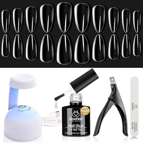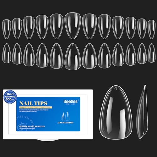 {"about_product": ["Beetles Easy Fall Nail Extension Kit: You can easily extend your nails and enjoy the fun of DIY manicures with Beetles gel nail tips! The newest, the fastest, most professional, nail enhancement in 2024 new nails.", "Premium Quality Nail Tips: Our full cover fall false nail tips are made of high quality PMMA material, they are breathable, lightweight and durable, making your nails look natural and nice. 9 ingredients, no smell, no harm to your nails and health. Pre-shaped, long lasting and soak-off nail extension set, easy to apply.", "Break Resistant, Super Strong: Extend your nails in mere 3 minutes and show them off for more than 21 days! Our developed formula nail gel provides the best break-resistant support to your extended nails. (Warm Tips: Nail glue is not included in this nail tips kit.)", "Various Sizes: Beetles nail extension set includes 500 pcs medium almond nail tips, 10 different sizes with 50 nails of each size, which is individually numbered 0 to 9. Easy to choose the suitable size for every finger.", "Multiple Applications: Beetles fall nails tips can be used for gel nail polish, liner gel art, press on nails, acrylic nails, dip powder nails, poly nail extension gel, great for nails salon, DIY at home nail art."], "product_description": null, "product_information": {"ASIN": "B09Y46DX7N", "Manufacturer": "Gelab cosmetics LLC", "Customer Reviews": "4.4 4.4 out of 5 stars \n\n (25,162)", "Best Sellers Rank": "#2,050 in Beauty & Personal Care (See Top 100 in Beauty & Personal Care) #21 in False Nail Tips", "Package Dimensions": "7.2 x 3.62 x 1.46 inches; 5.29 ounces"}, "product_details": {"Size": "500 Piece Assortment", "Brand": "beetles Gel Polish", "Color": "3-1-Medium Almond 500pcs (Clear)", "Style": "Medium Almond", "Material": "Plastic"}}
