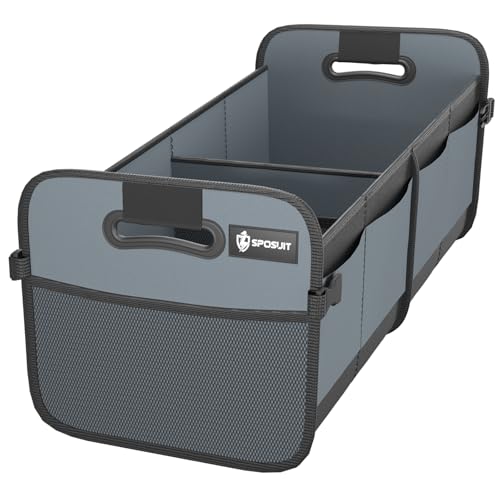 {"about_product": ["[ORGANIZE YOUR CAR TRUNK]: When you open the trunk after grocery shopping, you definitely don't want to have a mess of groceries splattered around the trunk. Our trunk organizer is secured with Velcro. It does a great job of helping you organize groceries", "[LARGE TRUNK ORGANIZER]: The dimensions of the suv trunk organizer is 23.6''L x 14.6' 'W x 12.2''H. There are 2 main compartments in the car trunk organizer for sedan with 8 side cloth pockets and 3 large mesh pockets, which can bring more storage space", "[HIGH QUALITY MATERIAL]: The car grocery organizer trunk is made of 600D Oxford polyester material, which has good abrasion resistance and durability.It can pass the test of time. If you want to clean it, any spray cleaner and damp cloth will do the trick", "[MULTI-PURPOSE FOLDABLE]: Our collapsible trunk organizer is easy to fold. You can place it not only in the trunk, but also in the front or rear seats of the vehicle. When you don't need to use it, you can fold it up for easy carrying and storage", "[SATISFACTION PROMISE]: Ensuring customer satisfaction is our goal. If you have any questions, please contact us. We are committed to serving you with dedication"], "product_description": null, "product_information": {"UPC": "783759626638", "ASIN": "B09YXYSSLL", "Brand": "Sposuit", "Color": "Black", "Model": "trunk organizer", "Shape": "Rectangular", "Capacity": "69 Liters", "Material": "Polyester", "Finish Type": "Unfinished", "Item Weight": "2.95 pounds", "Manufacturer": "Sposuit", "Number of Items": "1", "Special Feature": "Foldable", "Special Features": "Foldable", "Best Sellers Rank": "#418 in Automotive (See Top 100 in Automotive) #10 in Trunk Organizers", "Item model number": "trunk organizer", "Product Dimensions": "23.6\"D x 14.6\"W x 12.2\"H", "Date First Available": "April 27, 2022", "Manufacturer Part Number": "QSP100", "Specific Uses For Product": "Automobiles"}, "product_details": {"Brand": "Sposuit", "Color": "Black", "Material": "Polyester", "Finish Type": "Unfinished", "Item Weight": "3 Pounds", "Mounting Type": "Insert Mount", "Special Feature": "Foldable", "Product Dimensions": "23.6"D x 14.6"W x 12.2"H", "Number of Compartments": "2", "Specific Uses For Product": "Automobiles"}}