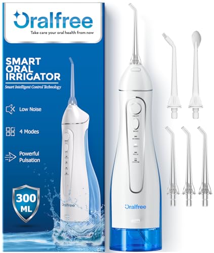 {"about_product": ["Deeper Teeth Cleaning To Improve Gum Status: The water dental flosser upgraded unique pulsation technique, with mouthwash whitening pressure water pulse 1500-1800 times/min, 20-120PSI strong water pressure to effectively removes all the trapped places that traditional flossing can't reach. benefitful for brace and bridge personal toothbrushes care", "4 Flossing Modes Power Dental Flossers: Oralfree launch the portable water dental pick teeth cleaner items that was upgrade to 4 modes with Low-noise Design setting of water pressure to fulfilled your daily life use.Each mode provides you variety of using choice from standard mode, Please choose soft mode when you use dental flosser at the first time. Also helpful for bad breath, benefitful for bridge care", "Powerful Battery With Usb Cable And Ipx7 Waterproof: Water Dental Flosser Cordless for Teeth With powerful and environmental battery, fully charged need 4 hours and used continuously for about 30 days. Come with USB Cable, applicable to a variety of charging equipements such as power bank, computer, laptop... With double-sealing rings, oral irrigator braces flossers prevent water leakage reliably, allows the dental flosser braces cleaner to be used safely for shower in bathroom", "Portable Design For Travel: This water teeth cleaner picks with 5 replacement jet tips for multiple family members that can rotate 360 degrees during use, to fulfilled your variety needs from standard clean to gum massage, suitable home, office, business trips or traveling use on the go", "Oralfree Oral Irrigator Perfessional Customer Service: 12 months after-sale service and friendly customer service. Oralfree is focus on helping customer to keep their mouth hygiene, guard their teeth health and Oralfree manufactured under strict quality standards to give our customers great experience"], "product_description": null, "product_information": {"ASIN": "B0B1H1RWYL", "Manufacturer": "Oralfree", "Customer Reviews": "4.3 4.3 out of 5 stars \n\n (10,298)", "Best Sellers Rank": "#16,388 in Health & Household (See Top 100 in Health & Household) #62 in Power Dental Flossers", "Item model number": "F5025", "Package Dimensions": "9.17 x 3.94 x 2.72 inches; 15.2 ounces", "Date First Available": "May 24, 2022"}, "product_details": {"Brand": "Oralfree", "Unit Count": "1.0 Count", "Power Source": "Battery Powered", "Special Feature": "Multiple Operation Modes, Multiple Pressure Settings, Portable, Rechargeable, Rotatable Tip", "Product Benefits": "Gum Health, Prevents Bad Breath, Prevents Cavities, Removes Plaque"}}